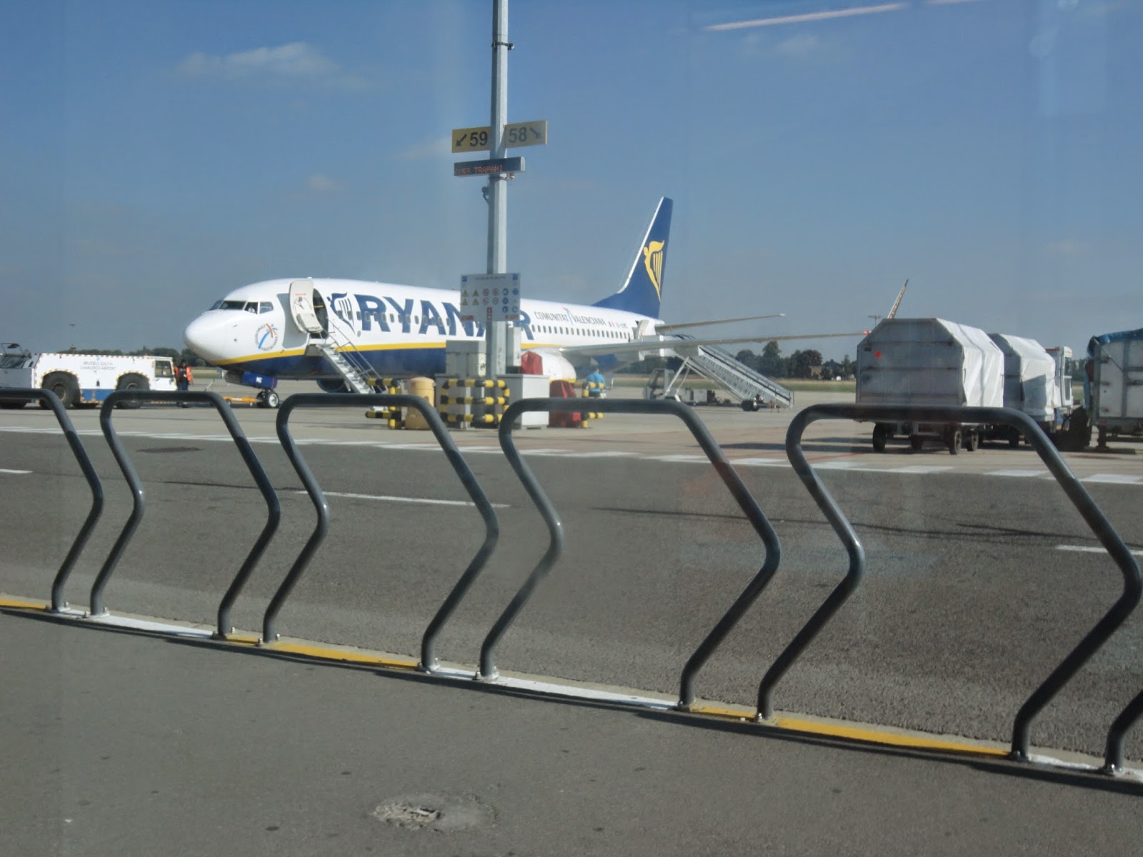 第一次搭廉價航空,發現搭的人超多,這個機場是比利時的法語區,離法國也蠻近的,主要是Wizz Air跟Ryanair的飛機在經營。搭乘Ryanair時如果你不是歐盟居民,記得要到任何一個掛行李的櫃台,在你印好的機票上蓋上Visa checked的章,飛申根國家不用出海關之類的動作,只要行李檢查完就可以準備登機囉,記得一定要自己印機票並且帶到,不然到當場印又會是一筆開銷,行李限制的部分,在這個Brussels South Charleroi Airport的Ryanair工作人員都沒甚麼在量測大小,只要不要太誇張都可以讓你直接登機的,在機場買了兩個Paul的麵包,準備上飛機囉。