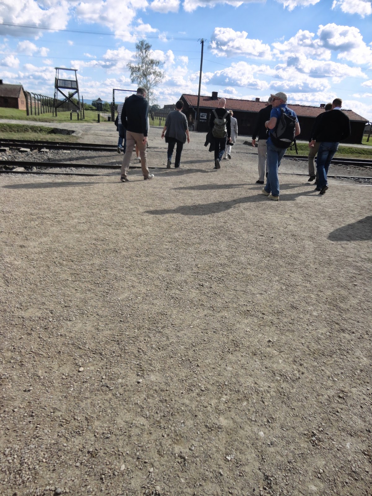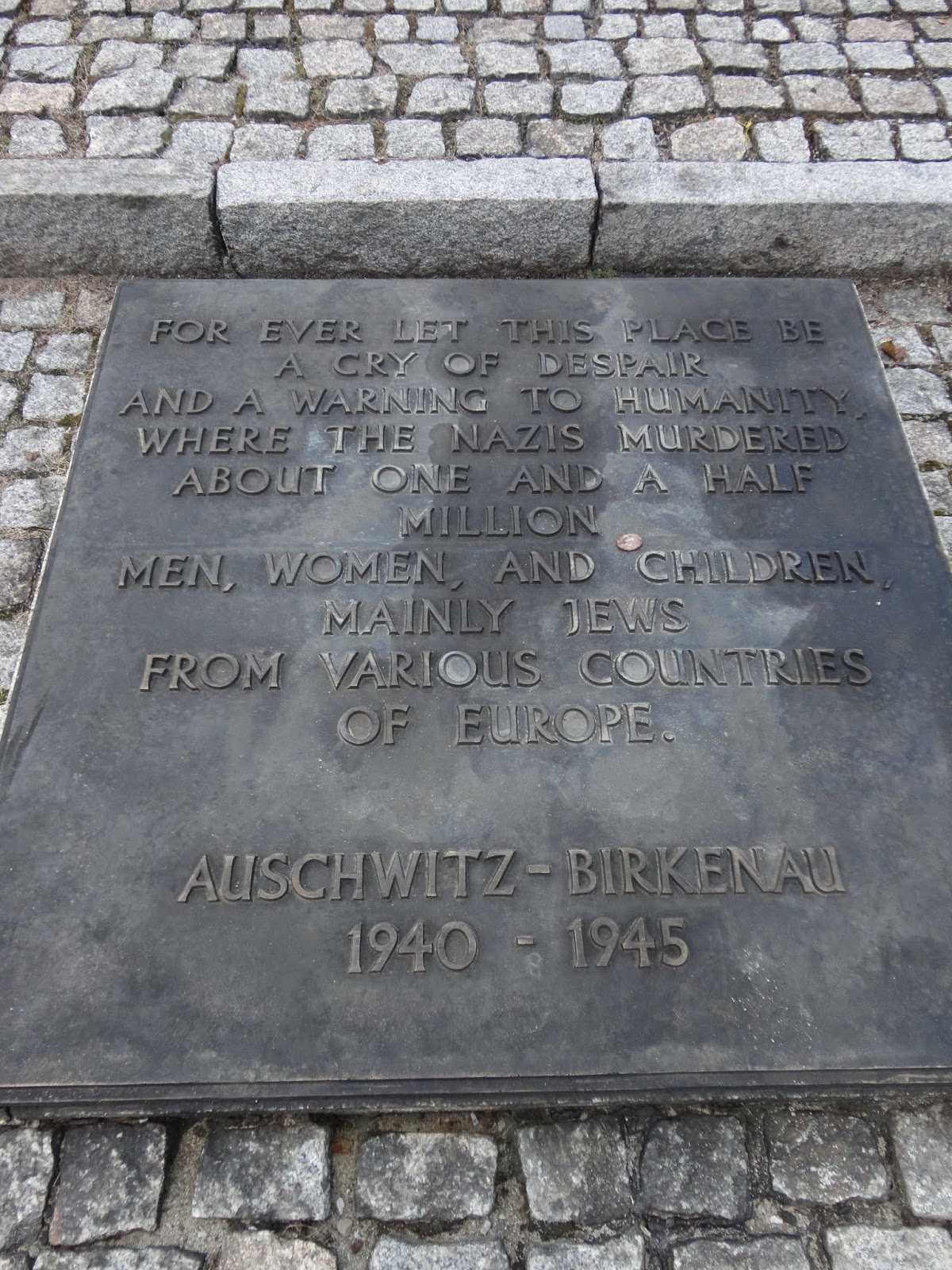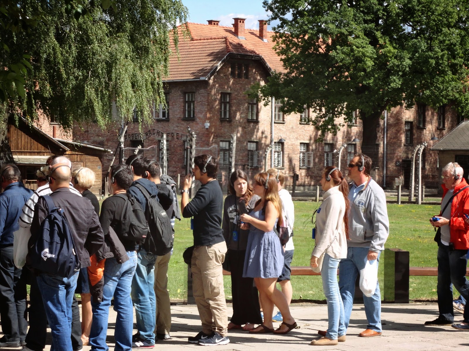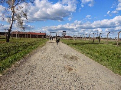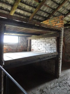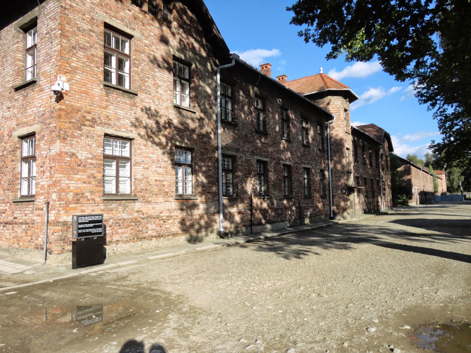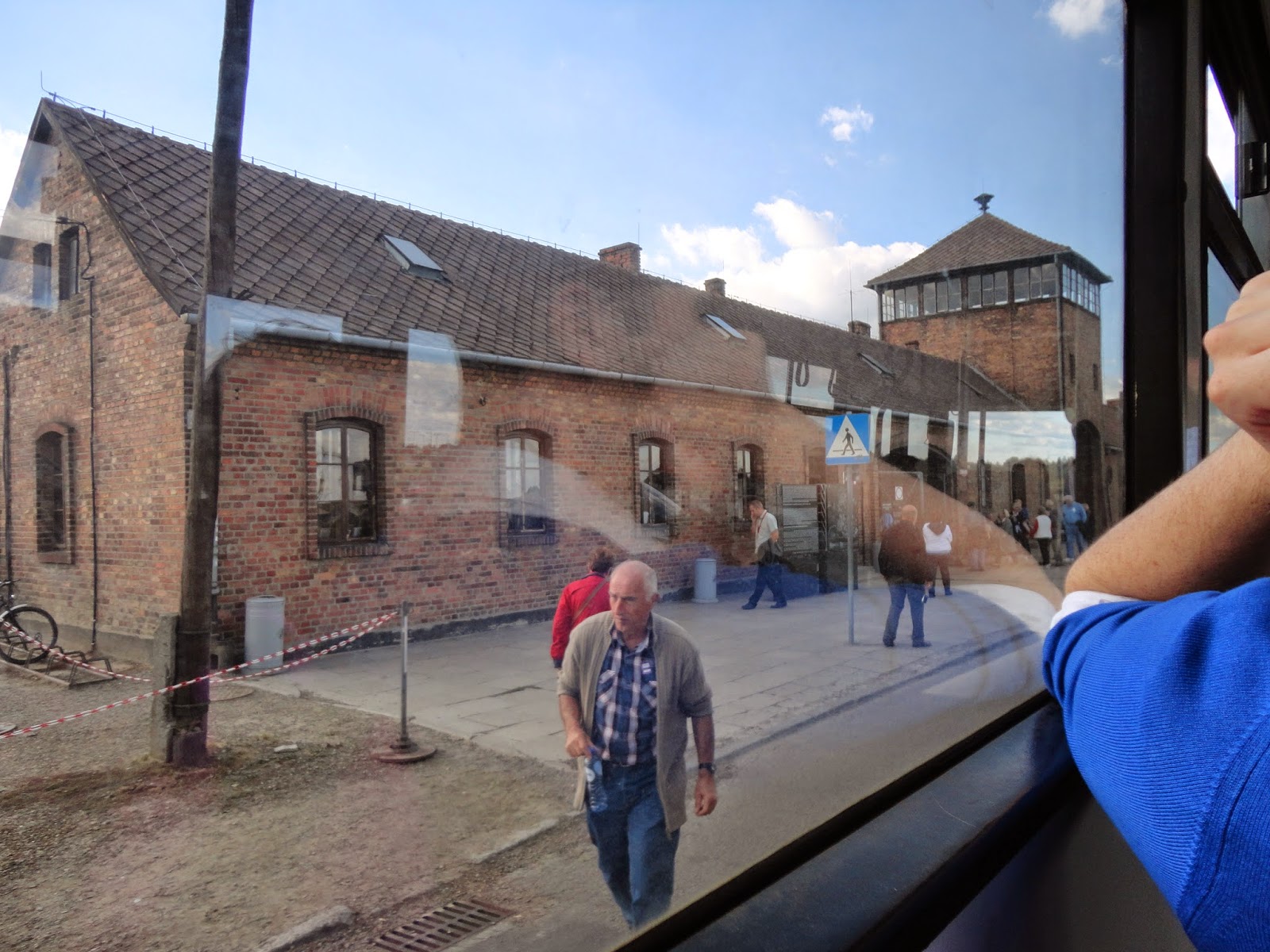 在奧斯威辛總共有三個集中營,而開放參觀的有兩個營區,目前所在的是一號營區。各棟建築物有當時被殺害者的照片,不一定都是猶太人,有共產黨員,政治犯等等,而猶太人占絕大多數,有看過辛德勒名單,可以略知一二整個集中營在做那些不人道的事情,但真正看到陳列在櫥窗內大量的眼鏡,頭髮(拿來做地毯以及禦寒衣物),皮箱,梳子,還有牙齒(補牙的金屬可以變賣)真讓人不寒而慄實在不敢拍攝,整個團的氣氛就隨著嚮導的語調低沉了下來。