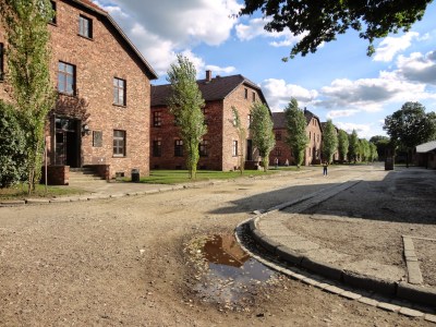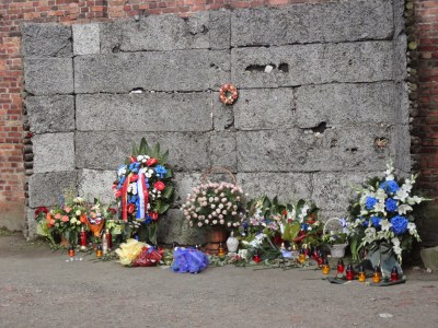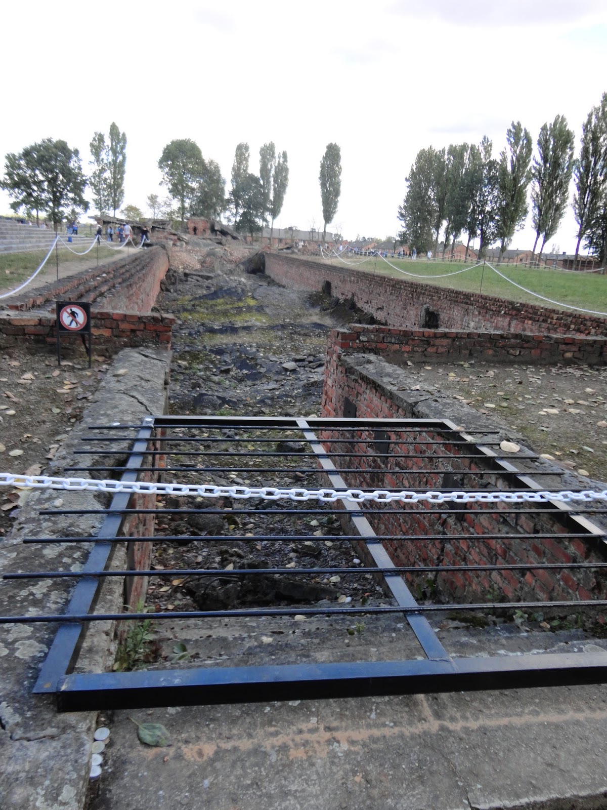 經過了一個面壁的死刑場擺滿了花束,又一個死刑場,在這裡,人的生命毫不值錢,在我現在參觀的是一號營區的尾聲,來到了毒氣室,走進去的那瞬間,腳步變的很沉重,裡面的布置就跟浴室一樣,一開始德國士兵會先騙大家要洗澡把身上的衣服脫掉,接著大家一起進去,忽然一片黑,從孔出來的不是水,而是殺人的毒氣,在幾十分鐘後把裡面的毒氣抽調,士兵們開始進去搬運屍體,並且在隔壁就有一個鍋爐可以把屍體燒掉。最殘酷的是,他們會放音樂伴隨著猶太人洗澡,而在屠殺完後,也是由猶太人及士兵來搬運這些屍體。