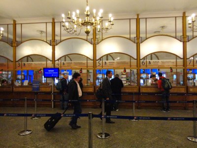 穿越火車站前的mall來到火車站大廳,要先買明天晚上的夜車,怕會沒位置所以今天先買好比較保險,但因為身上沒有現金,只好忍痛在火車站裡面換錢,匯率沒有很好因此被坑了不少,建議如果到這種不是用歐元區的國家,可以先安排市中心繞繞的行程,通常都會有很多家換錢的店,可以稍作比較後再一次換大量的錢。