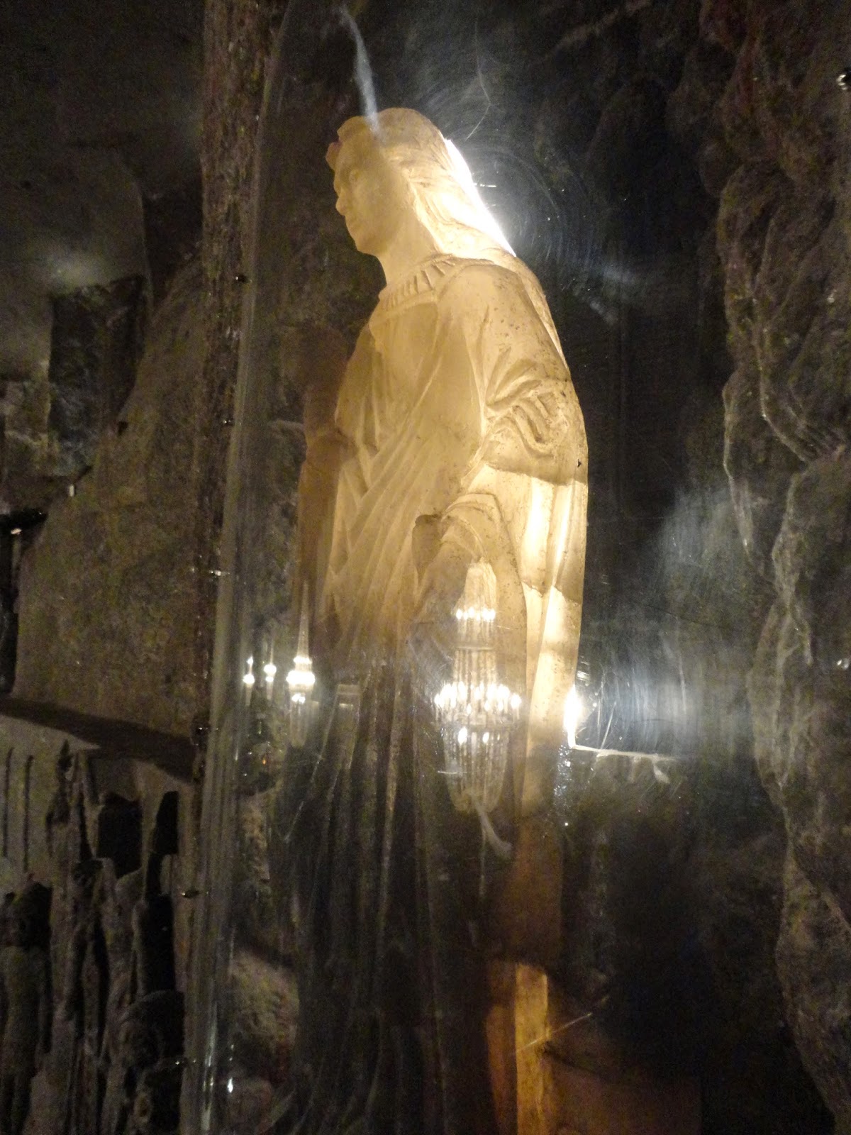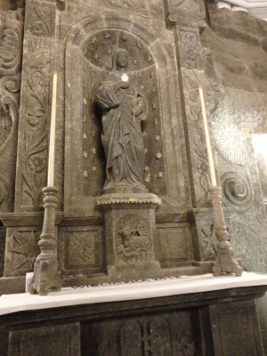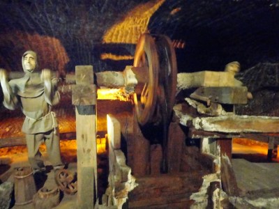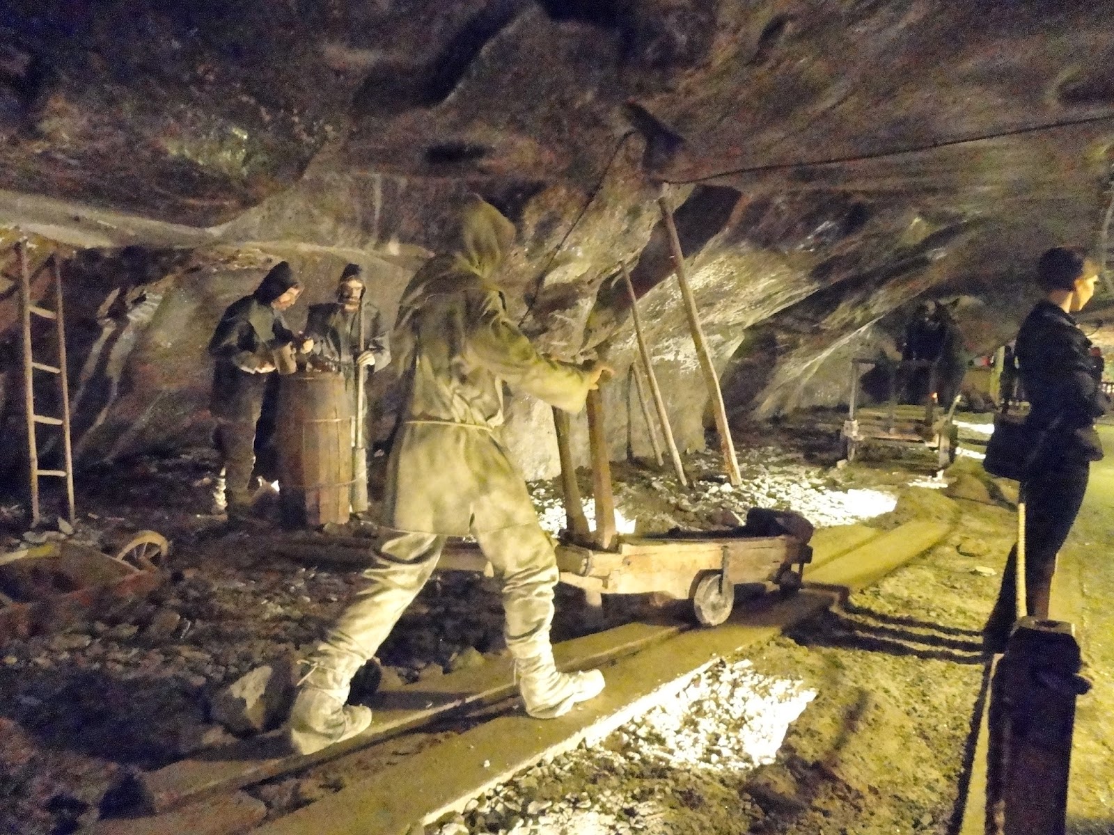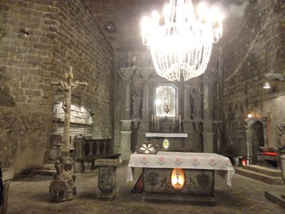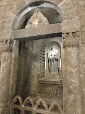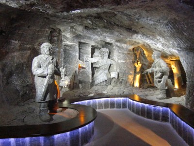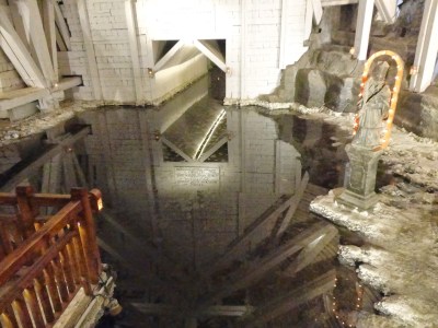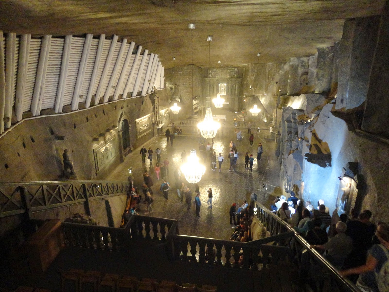 整座礦坑裡有許多工人的房間,禮拜堂,還有地下湖泊,跟富麗堂皇的餐廳,這個餐廳到現在都還是有給人家包場做為宴客之用,以及鹽雕。