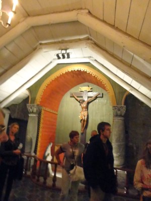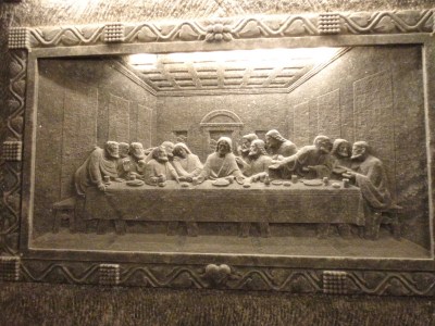 最著名的鹽雕就是聖金加教堂裡最後的晚餐,導遊看到每樣東西都會叫你把手摸摸看,再用嘴巴舔舔看是不是鹹的。