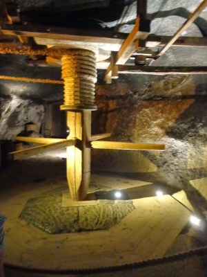 因為整座鹽礦很老舊,走下去的梯子一次也不能承受這麼多人的重量,所以會等到前一團的人下完整座樓梯之後才會給下一組人進場,鹽礦有327米深,大約60、70層樓高,所以在走下去的時候感覺到一直永無止盡的往下走往下走,才會到地底下。