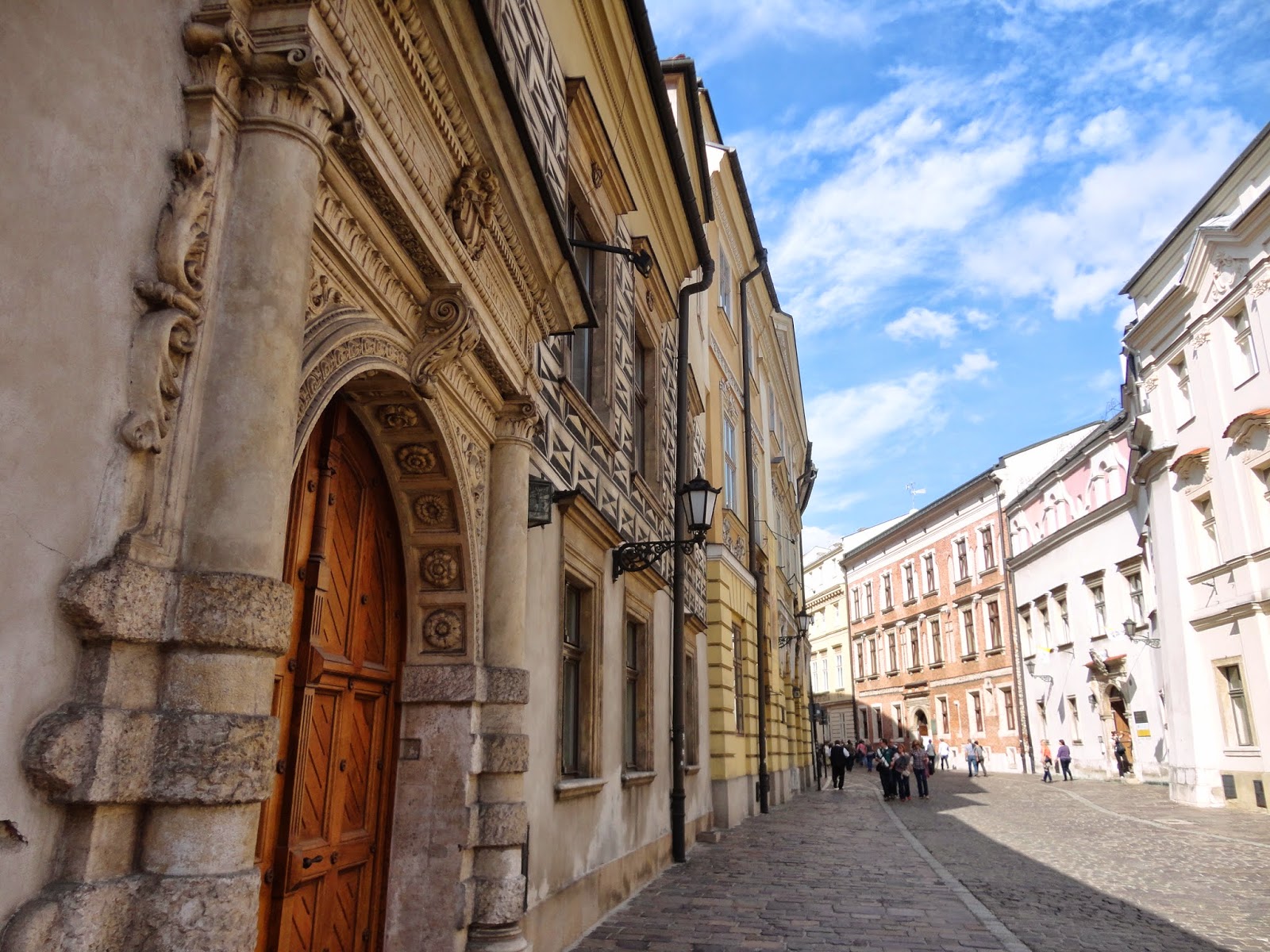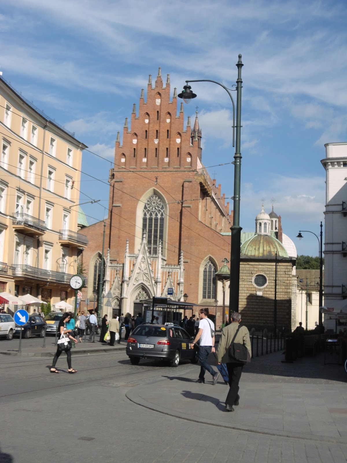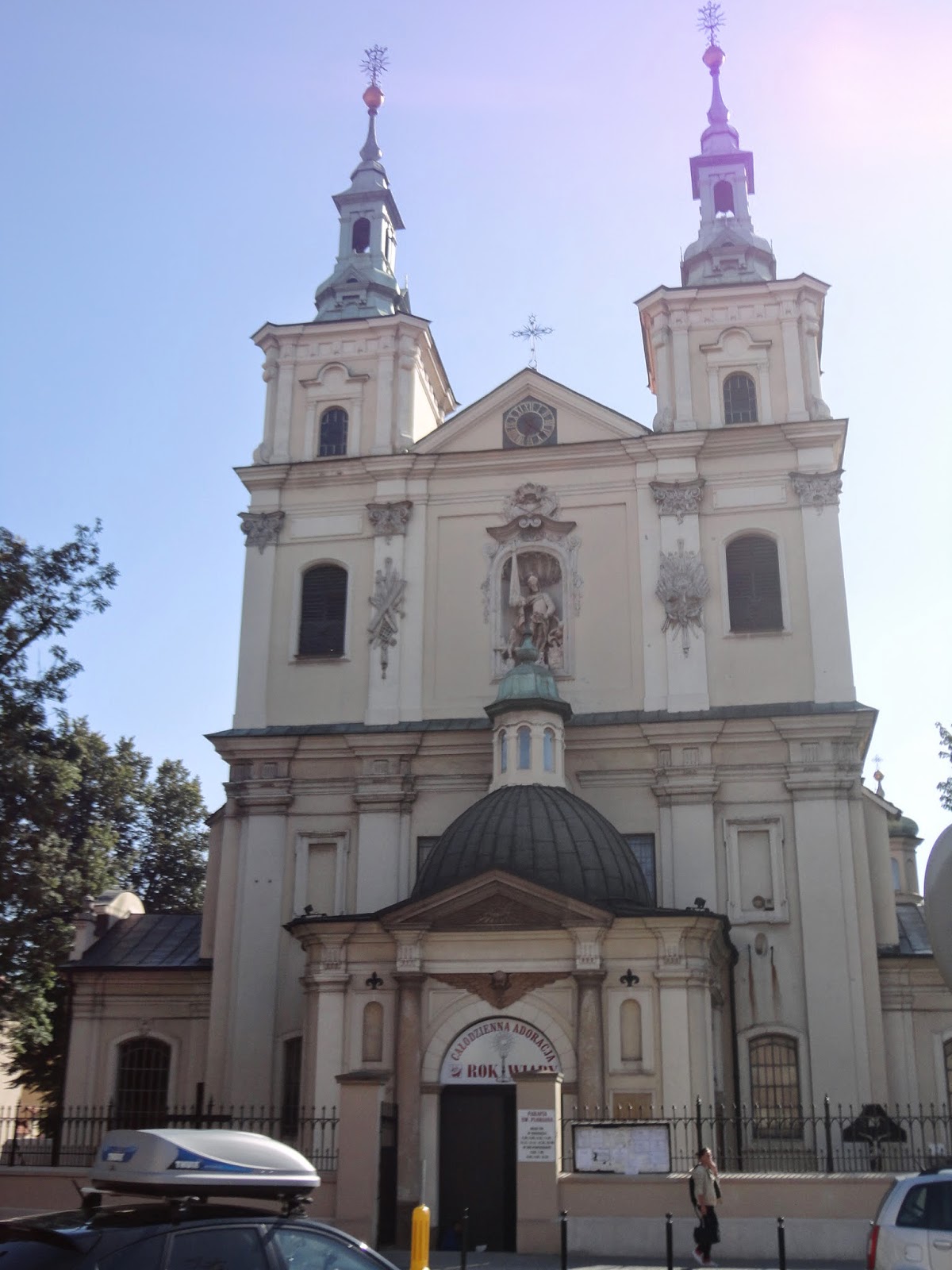 沿著古香古色的街道走,經過了聖伯多祿聖保祿堂,是全波蘭第一座的巴洛克風格建築,運用大量的雕像來裝置這座小教堂。