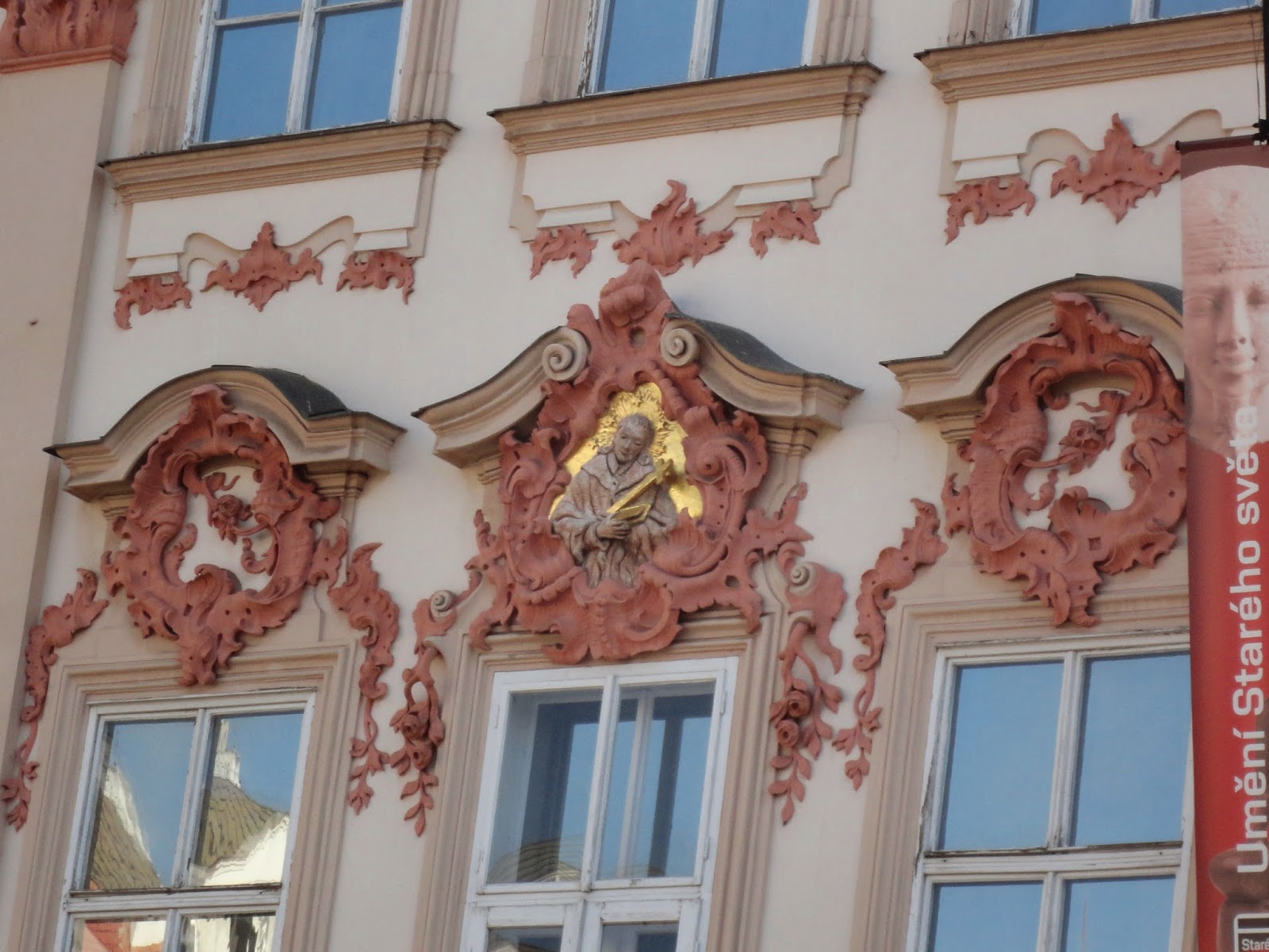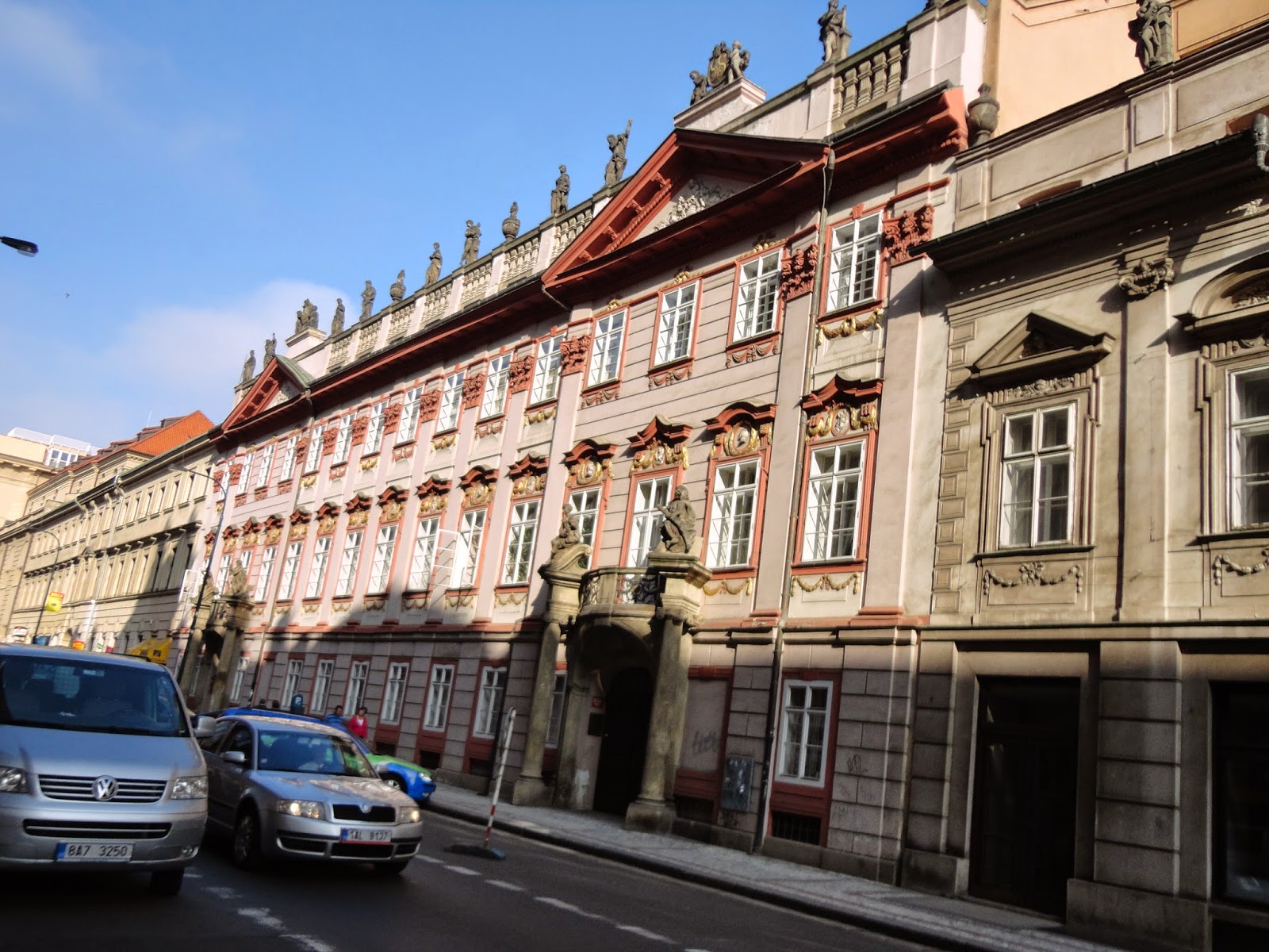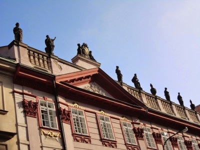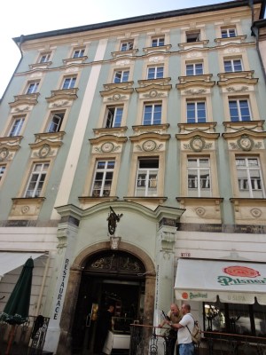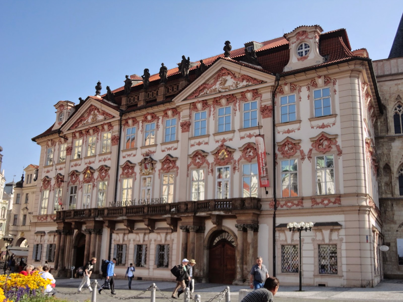 回頭看可以看到,炫麗的葛茲.金斯基宮(Palac Golz-Kinskych)。原本在18世紀是葛茲伯爵的宅第,後來變成是外交官金斯基的住所,而目前則是布拉格國立博物館的分館。