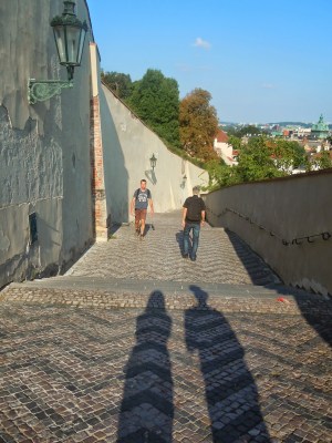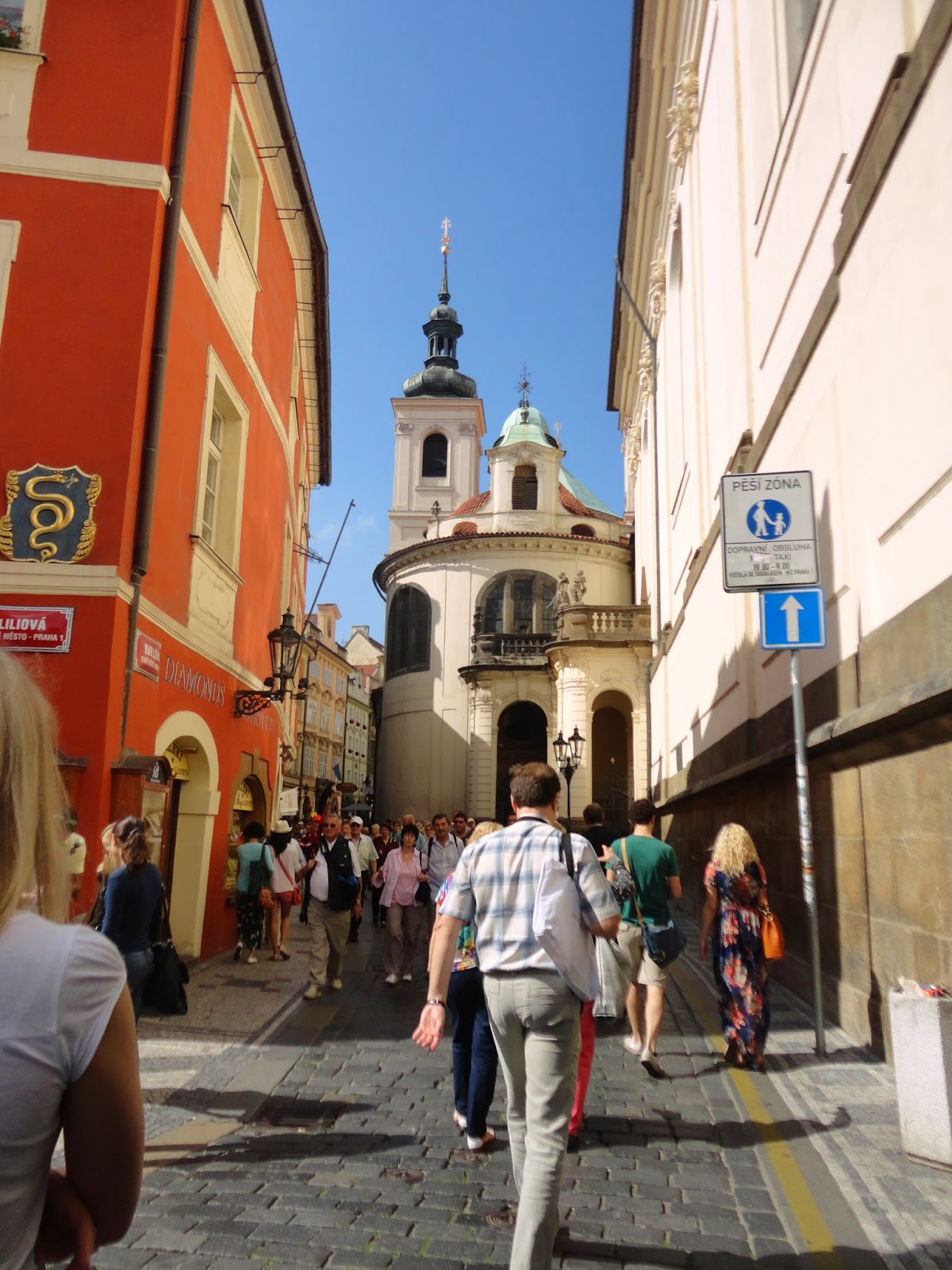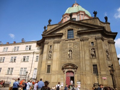 過了查理大橋往城堡前進,從老城區過橋後就是小城區,在小城區的聖尼古拉教堂下的陰影稍作休息,把隨身攜帶的麵包吃完後,繼續加冕路線,