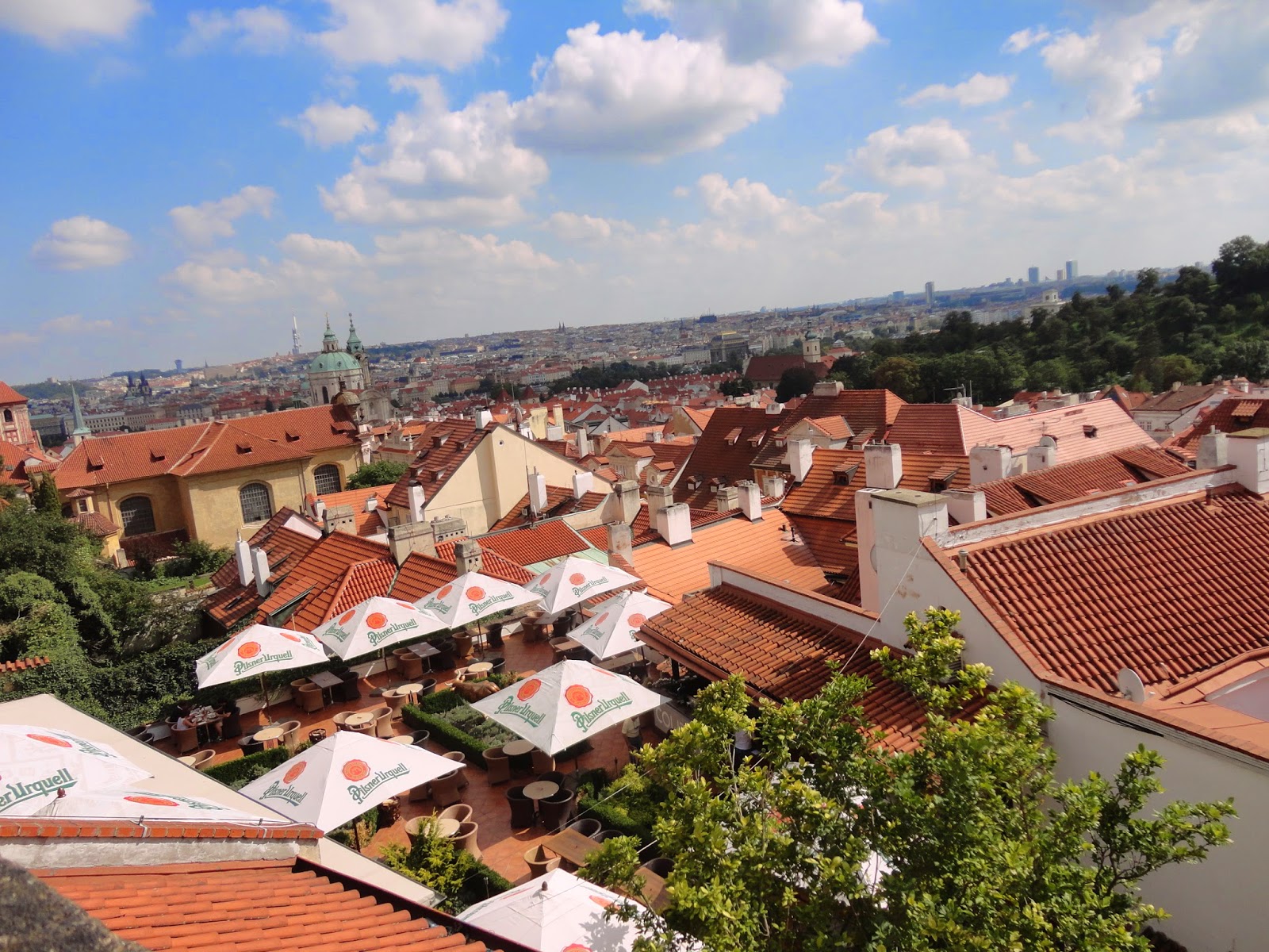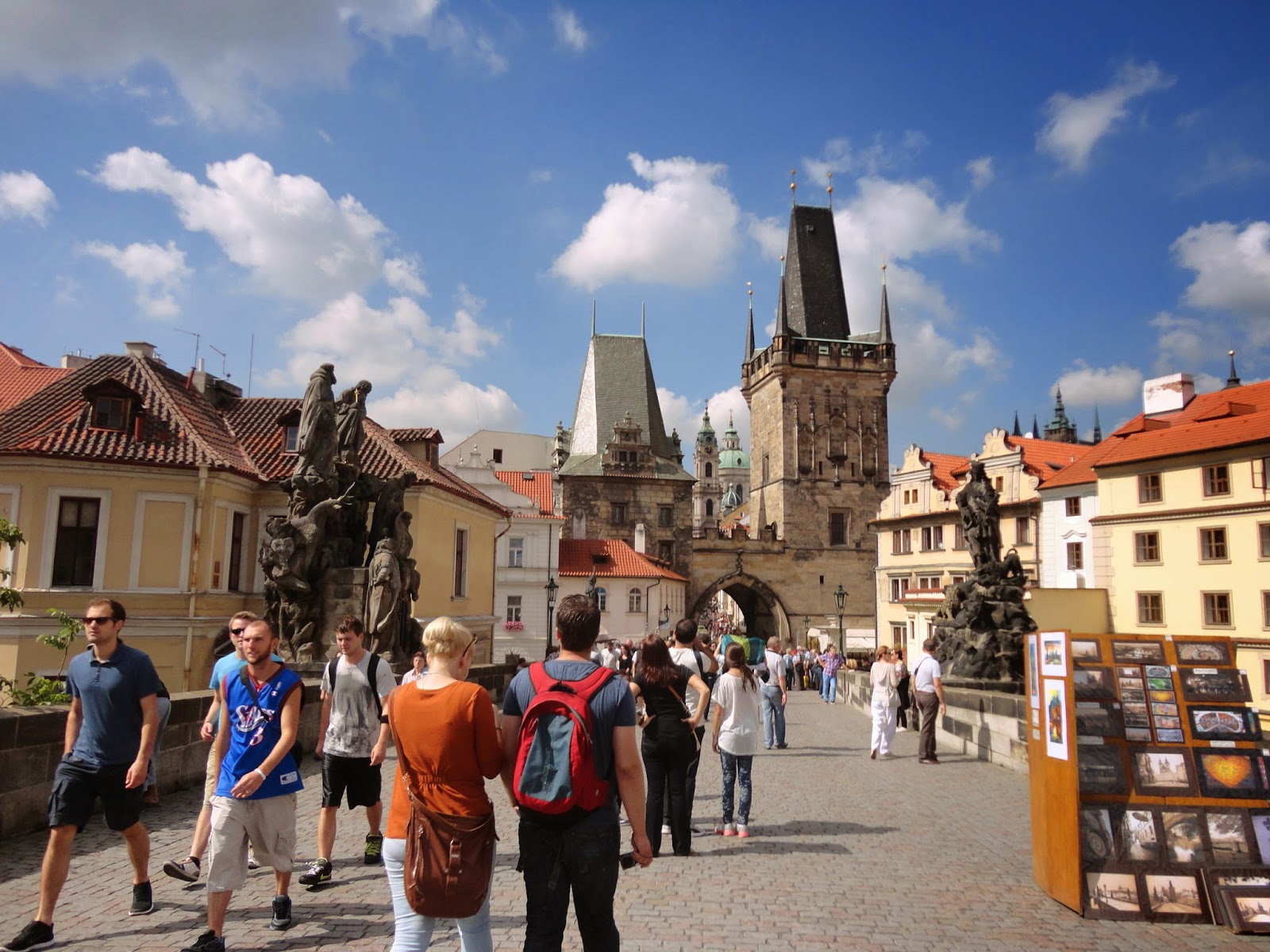 布拉格在神聖羅馬帝國皇帝查理四世(哈布斯堡王朝)統治時期,曾是神聖羅馬帝國的首都,並在此地建造了中歐東歐第一所大學查理大學,之後經歷哈布斯堡王朝的神聖羅馬帝國,到了拿破崙逼迫神聖羅馬帝國瓦解,變為奧匈帝國的版圖,一戰結束後奧匈帝國瓦解,變為捷克斯洛伐克共和國,並在冷戰過後,捷克、斯洛伐克變為兩個獨立的家國家,成為現在捷克的首都。今天的路線是參照旅遊書上介紹的加冕路線,穿過火藥塔沿著Celetna street(采萊特納街)走,可以到old town Square,在沿著舊市政廳旁的路走,經過十字軍廣場後穿過Charles Bridge,在走到另一個聖尼古拉教堂,並轉到Nerudova街一直往上爬到Prague Castle。