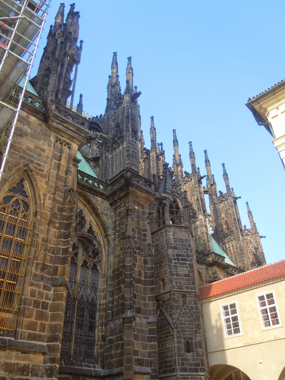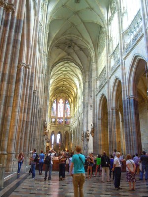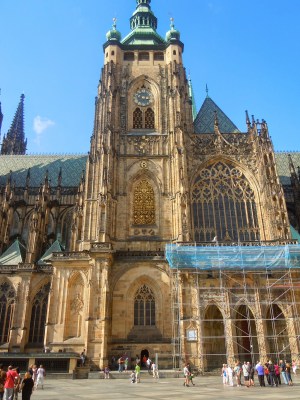 來城堡的重頭戲就是參觀聖維塔大教堂(St.Vitus’s Cathedral),於是買了套票可以參觀舊皇宮,聖維塔大教堂和聖喬治教堂的套票,聖維塔大教堂最早建於10世紀是屬於羅馬式圓形教堂,到查理四世時改為哥德式,