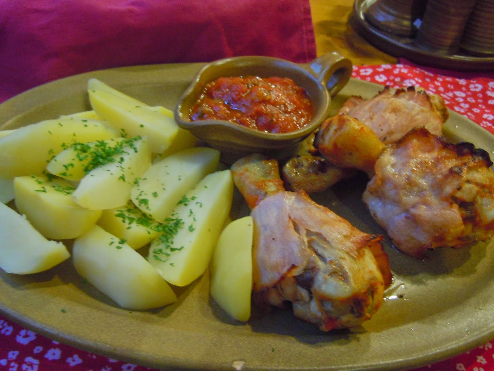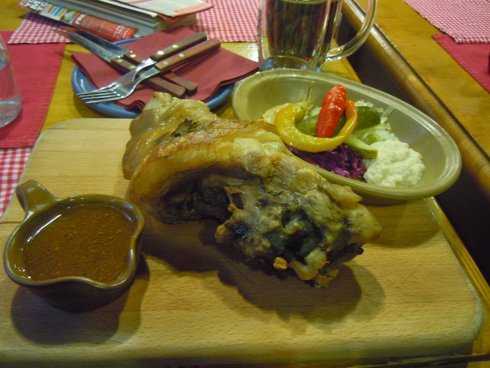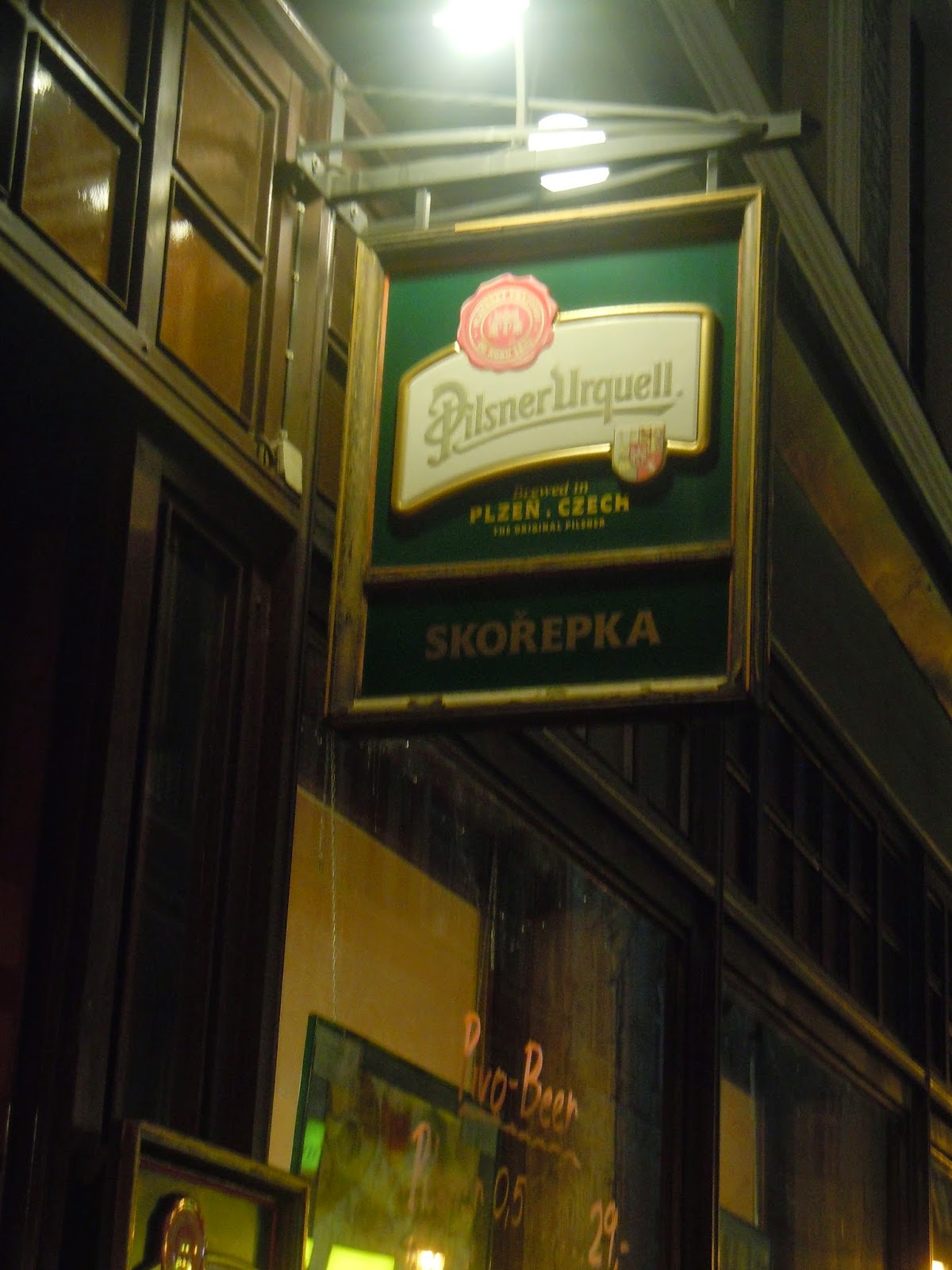 傍晚漸漸來臨,慕名來到了Restaurace Skořepka,這家餐廳燈光美氣氛佳,在樂團的伴奏下,把可口的豬腳跟烤雞腿吃下肚,搭配爽口的沙拉和啤酒,而且物美價廉,不會亂收麵包費。