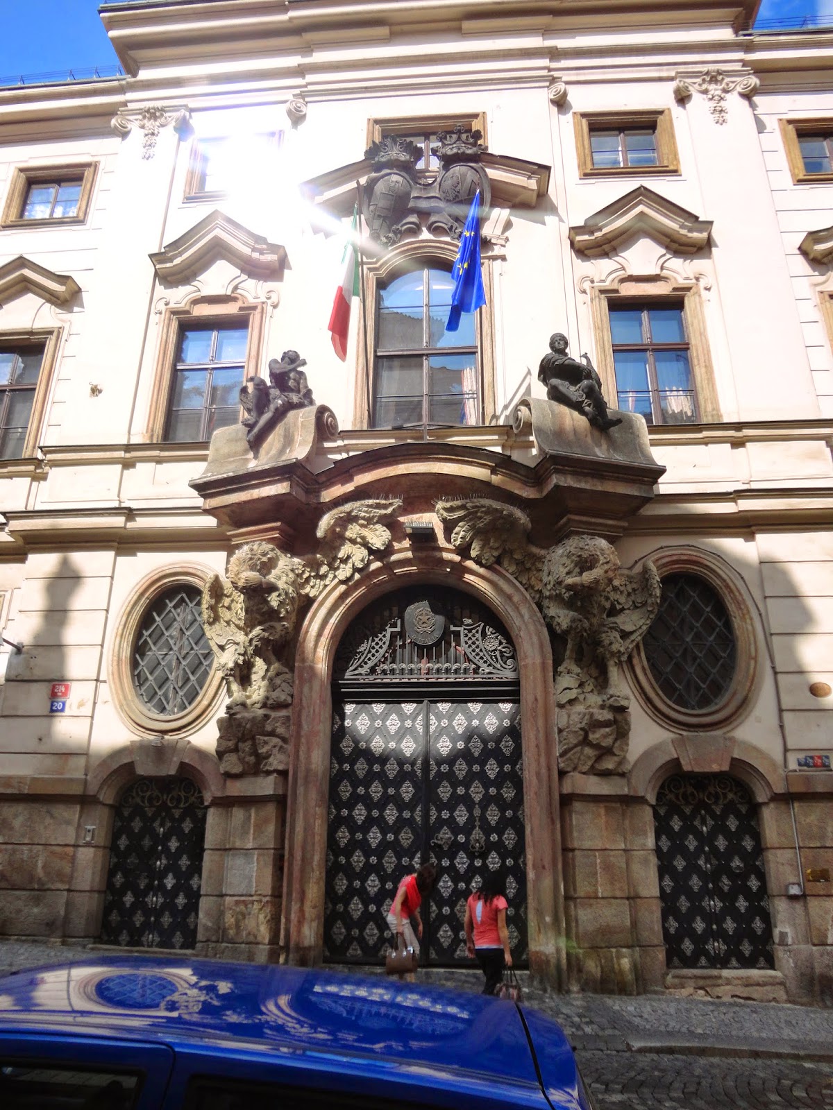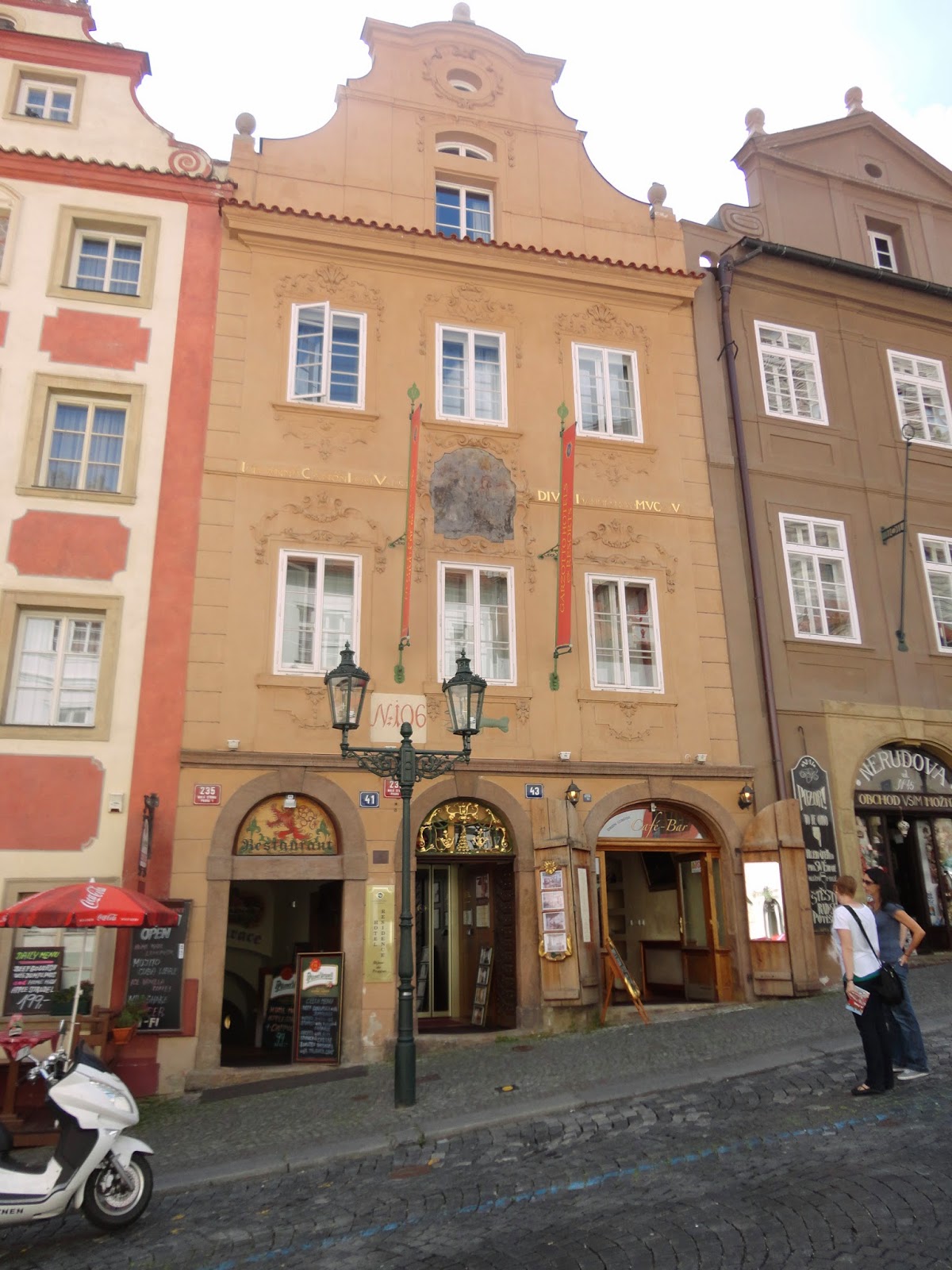 彎到Nerudova街上,又有許多巧奪天工的建築,這條街也是通往城堡(目前是捷克總統辦公室)的道路,整條街上還有許多的大使館。