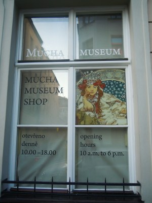 在找換錢的過程中發現原來在布拉格有一個慕夏美術館,只可惜已經過了營業時間,只能在外頭看著紀念品過過乾癮,但也因此在美術館的對面找到一家匯率最好的換錢店,在那裏換了大量的捷克幣以供接下來的旅程使用。
