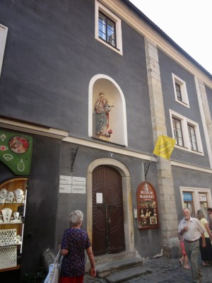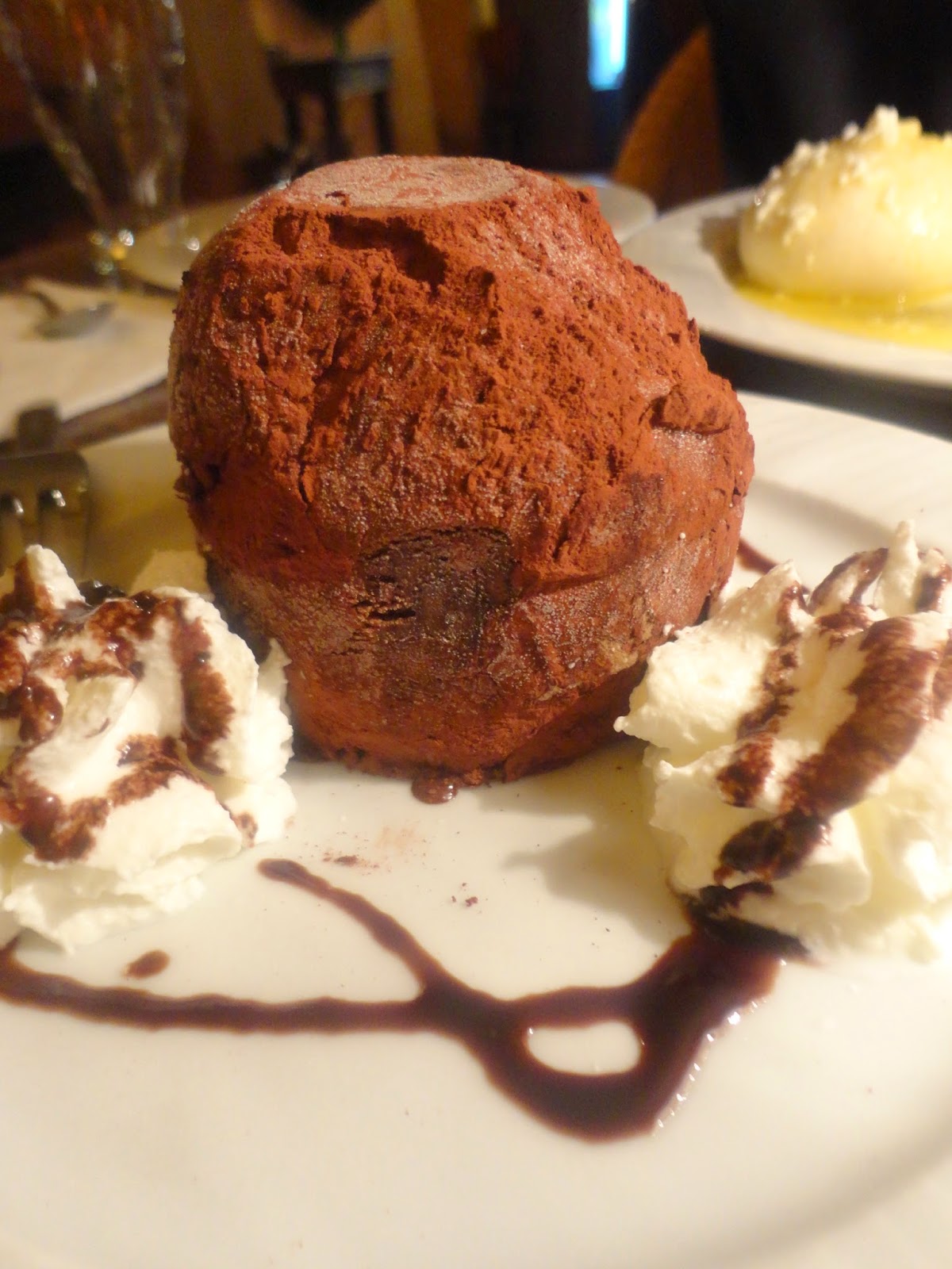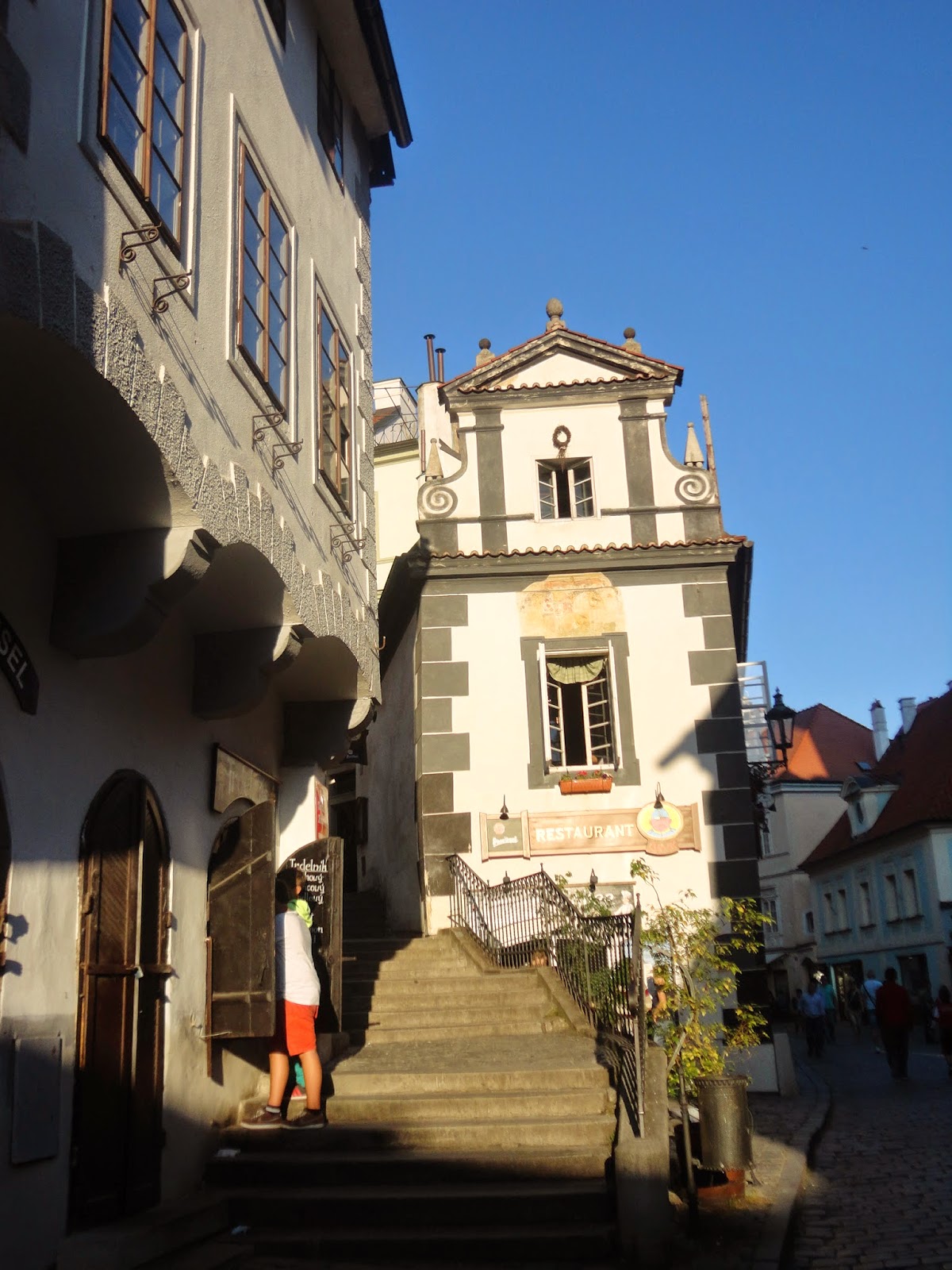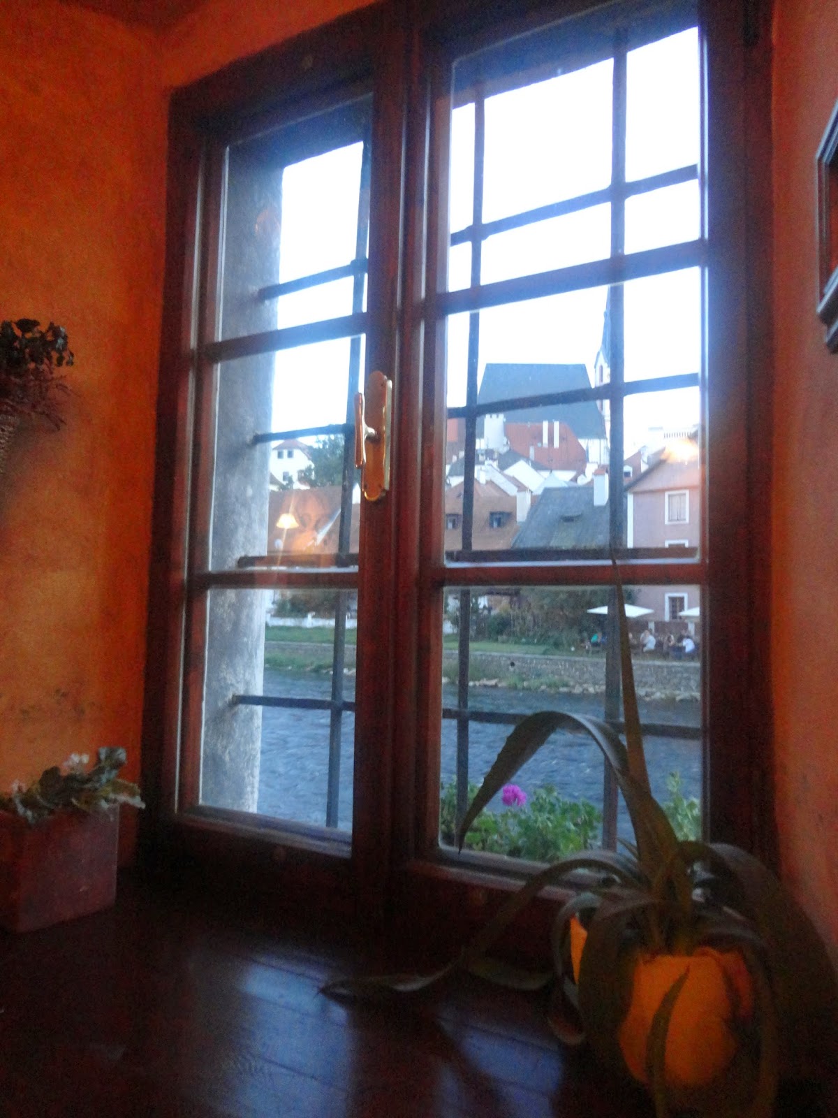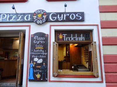 而香草冰淇淋的外面再包著一大圈巧克力冰淇淋,最裡面還有巧克力醬,吃起來很不膩而且很大一球,一般捷克小鎮的消費會比布拉格便宜一些,是可以吃大餐的好時機,