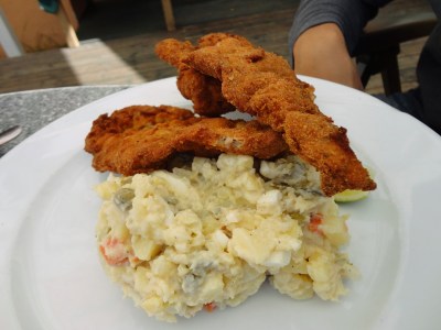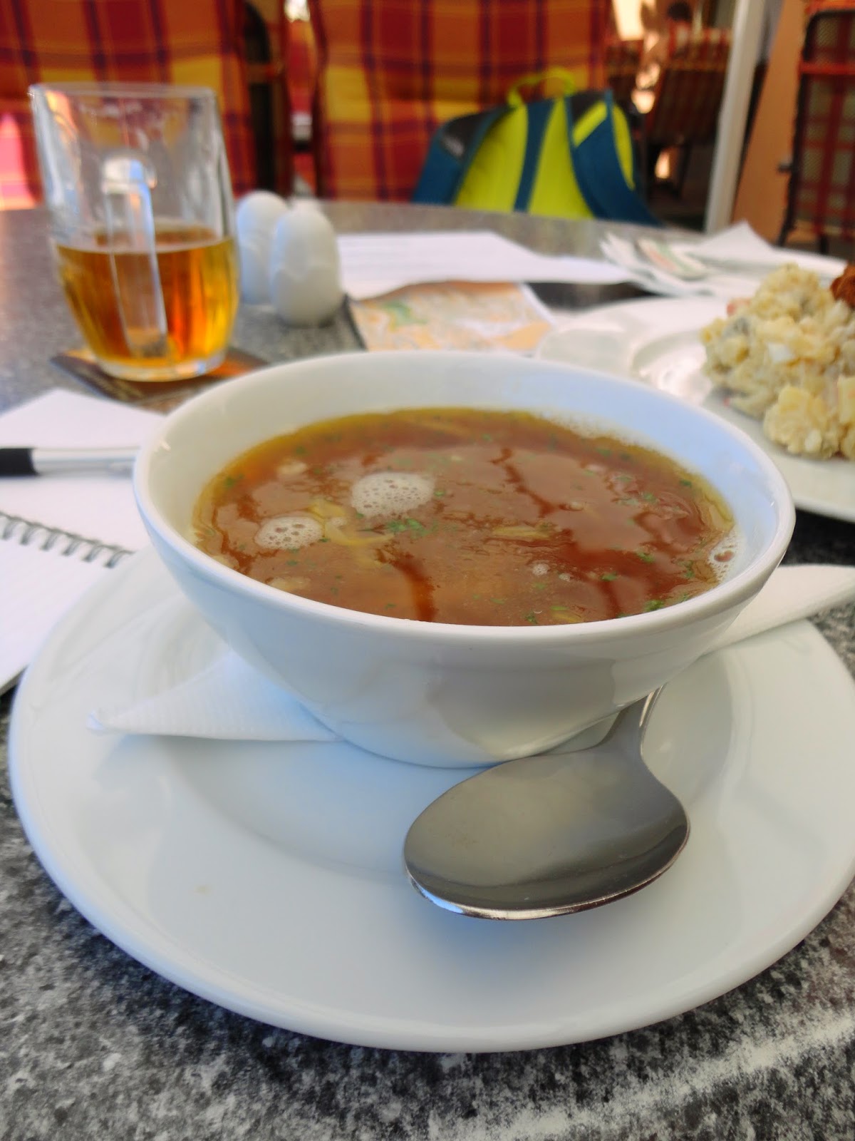 走回廣場到剛剛的Grand Hotel Zvon一樓的附屬餐廳吃東西,點了一碗洋蔥湯,一盤炸豬排,配上一杯啤酒,坐在廣場邊,享受溫暖午後的陽光。