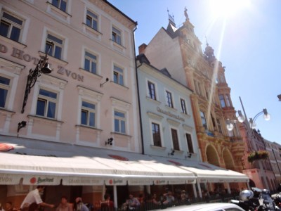 而廣場上最富麗堂皇的建築就是市政廳和一間旅館Grand Hotel Zvon以及他附屬的餐廳,在這廣場上他就佔了三棟建築物。