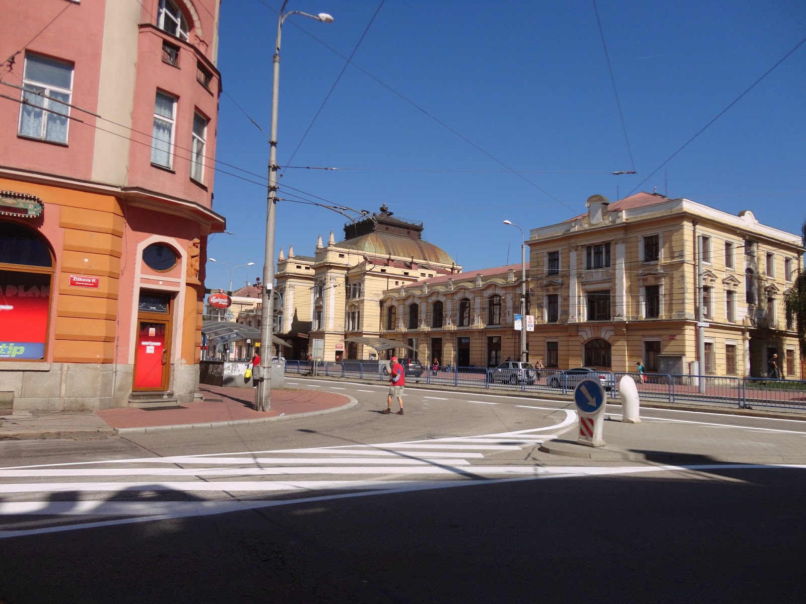 到了CB,可以先把行李寄放在客運站的寄放處,今天剛好是禮拜六,店家都沒有開,整座城人也很少,跟布拉格比像一座死城一般,沿著火車站前的大路一直走,