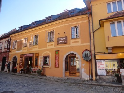 隨著行李拖在石頭路上的轟轟聲,在進小鎮沒多久就看到民宿Pension Danny,