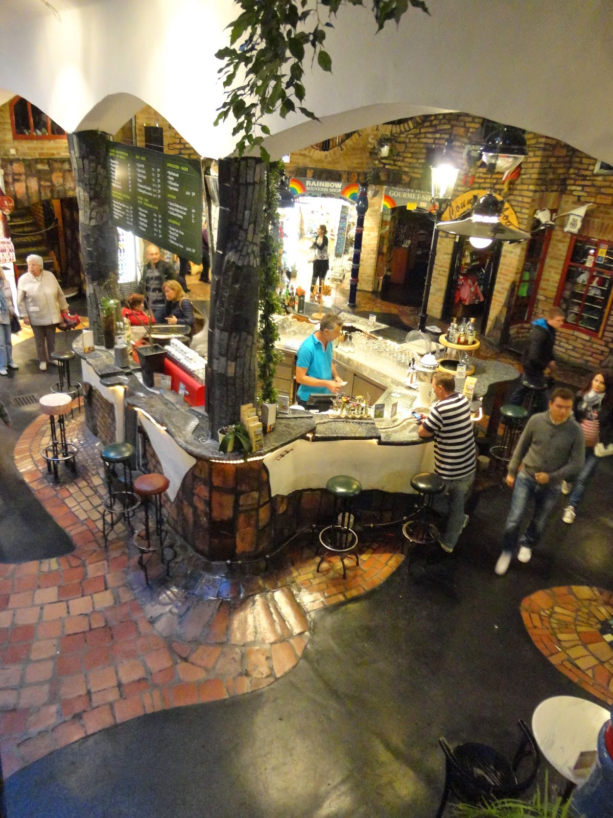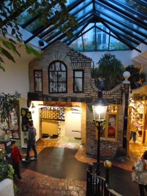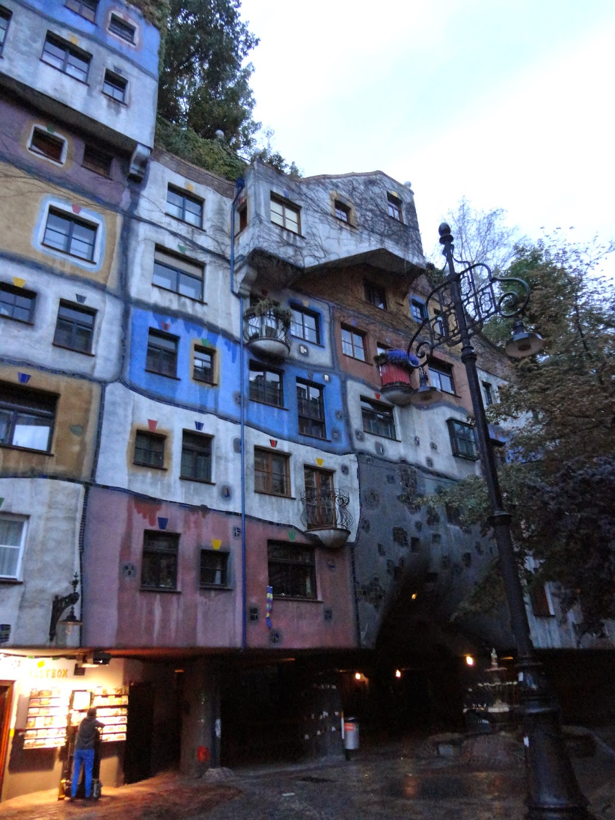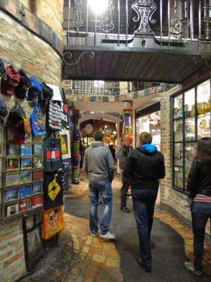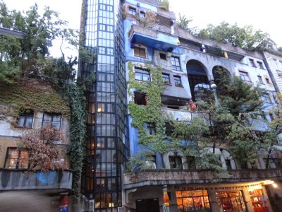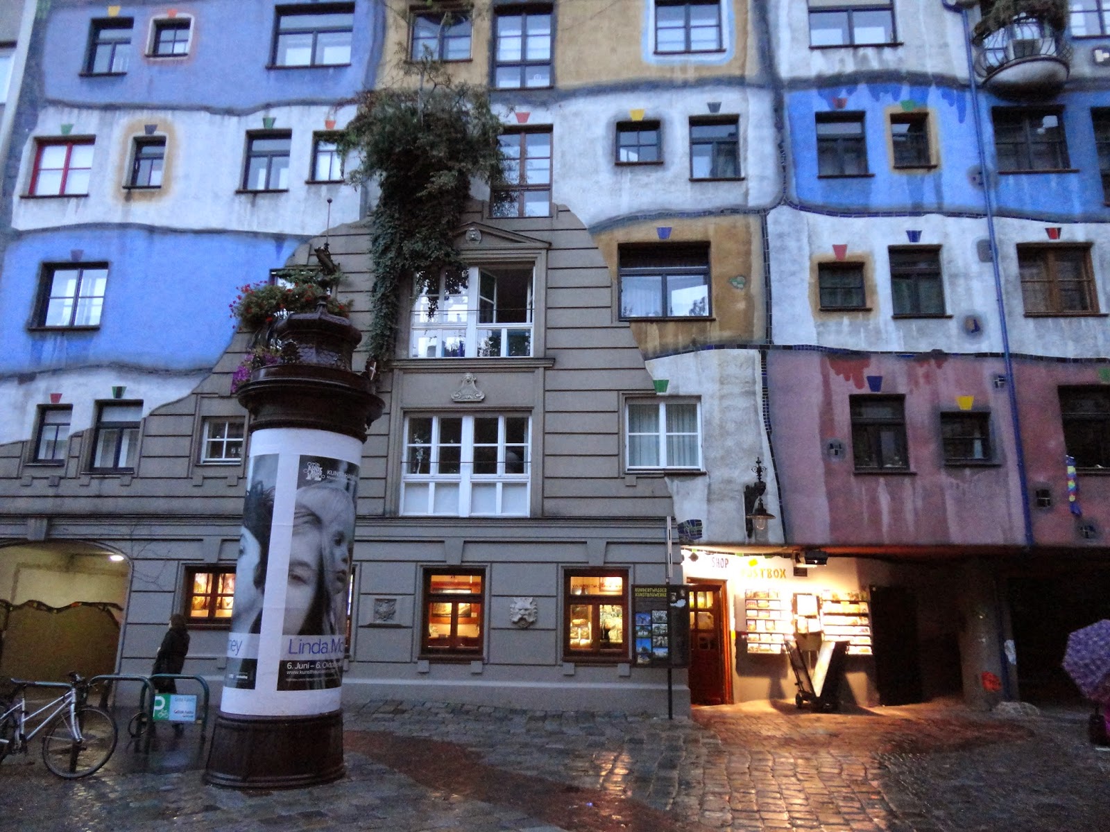百水公寓是維也納最受歡迎的藝術性住宅,但因為太出名了,現在公寓裡已經不方便參觀,但可以到對面的模仿百水公寓裏面設計的紀念品商場逛逛,體會一下公寓裡生活的感覺,只可惜來的太晚,商店都要打烊了,稍微逛逛後,走到對面百水公寓下面的紀念品店買了張明信片後離開,只能看到外觀真的太可惜了。