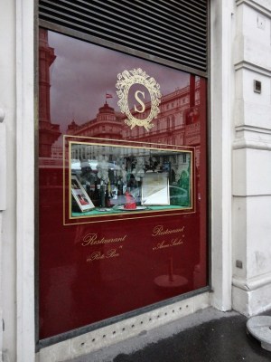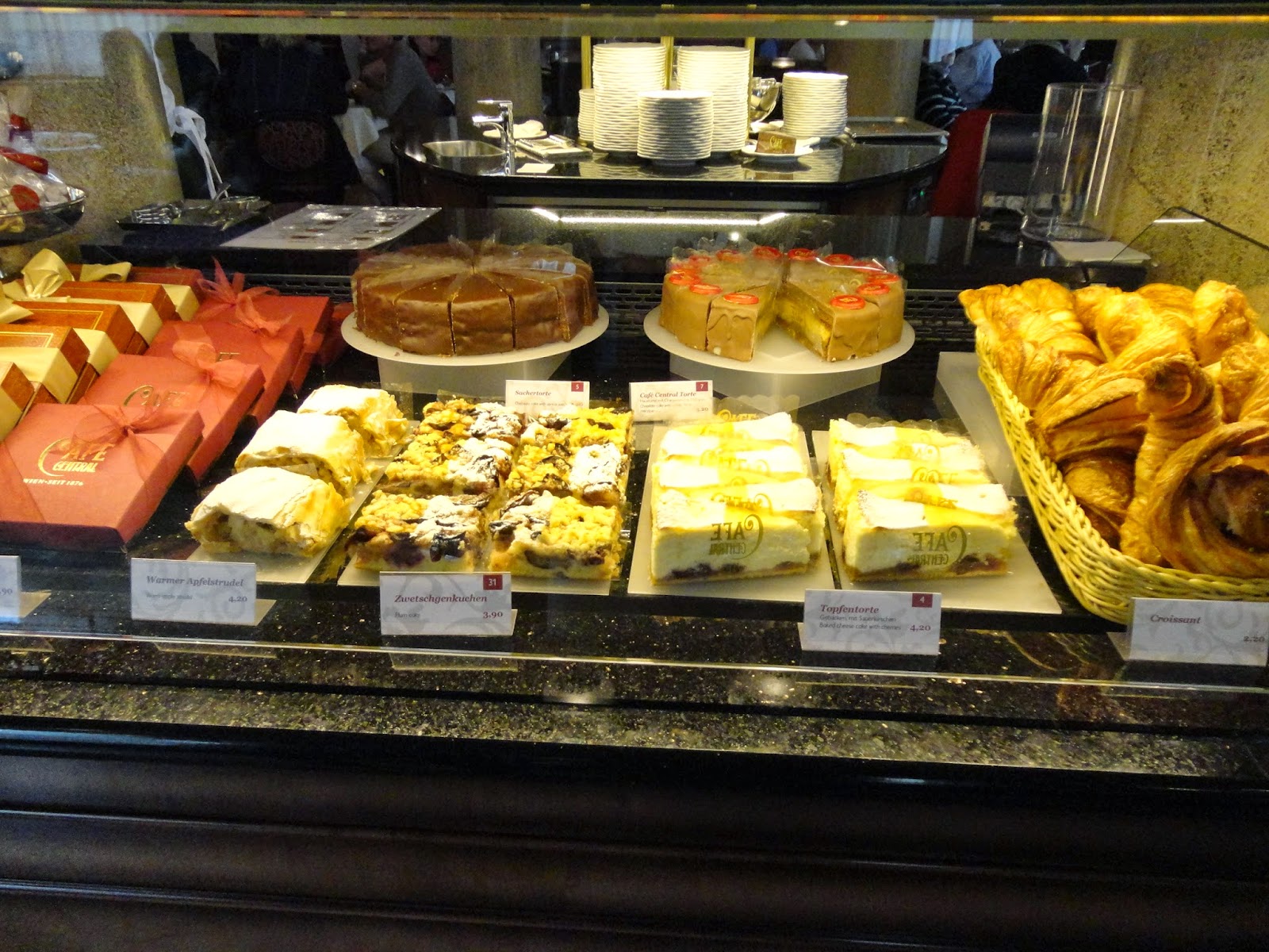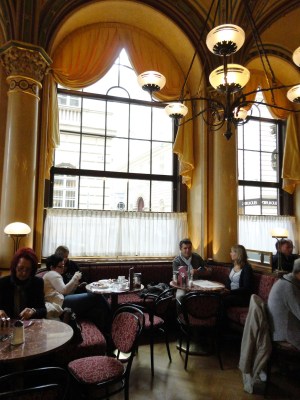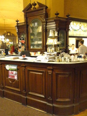 這裡是電影”Before Sunrise”的電影場景之一,點了一杯義式熱巧克力Creme Schoko: 4.3EUR(非常濃郁),跟Melange: 3.9EUR。