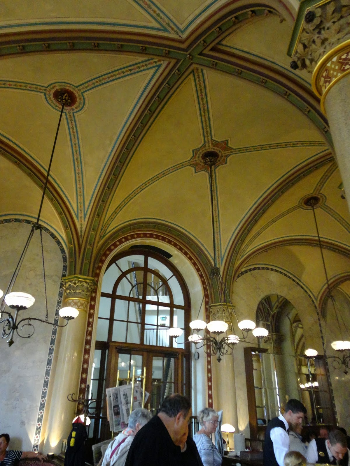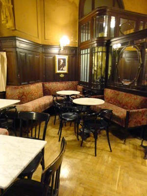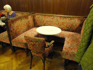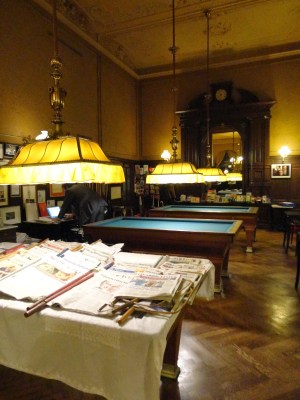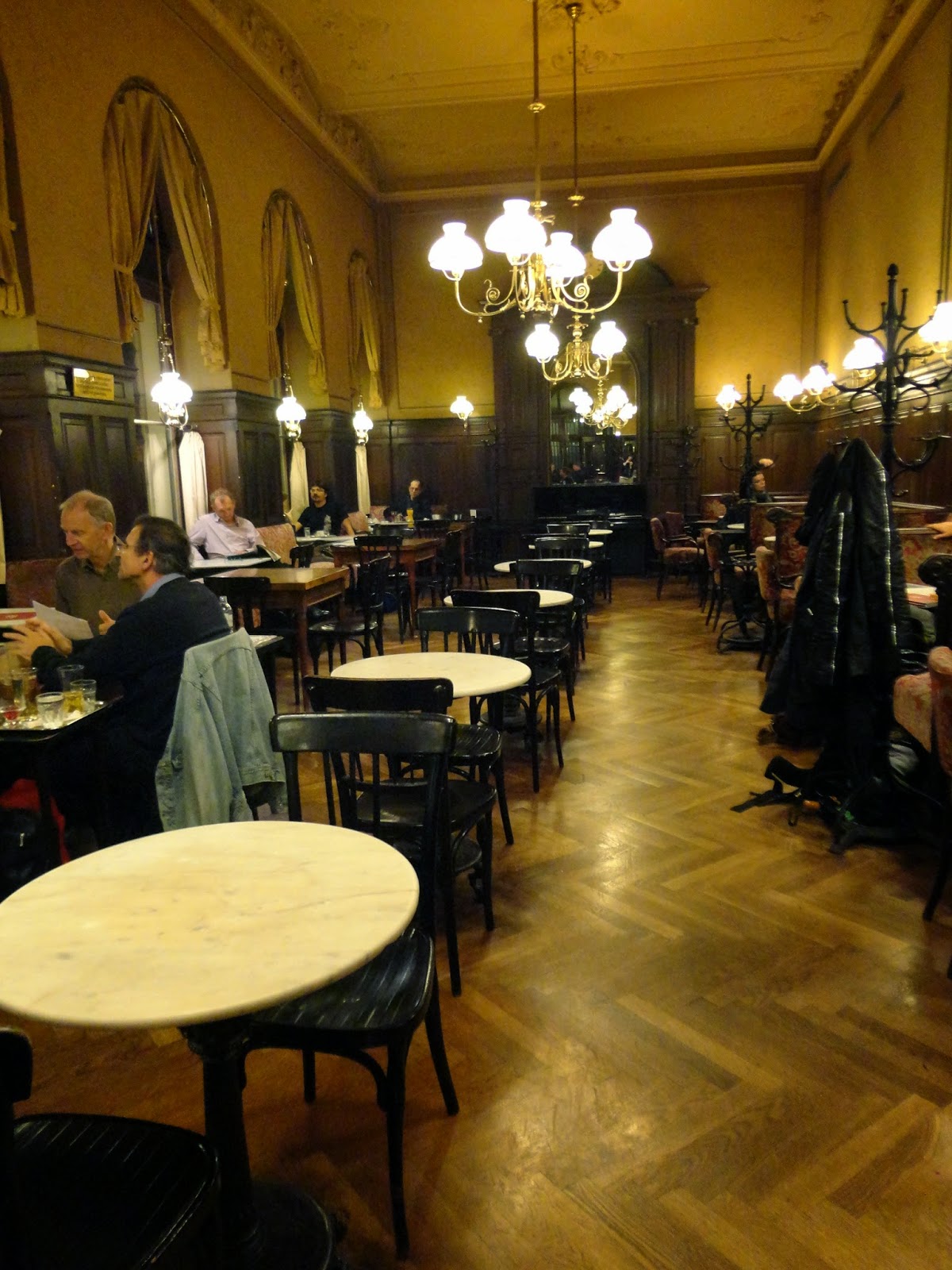 這家咖啡館從1880年開幕到現在,顏色退掉的天鵝絨椅,以及磨到發光的椅腳都充滿了歷史味道,隔壁桌的人在玩牌,咖啡廳裡還有撞球檯,咖啡廳不只是咖啡廳,而是享受聚會一同歡樂的地方。