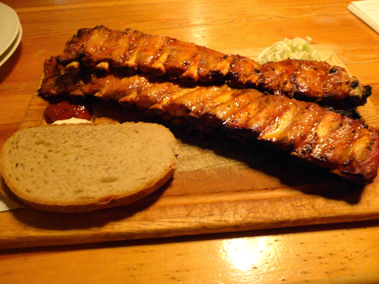 享用完豬肋排就在餐廳吃起了剛剛買的蛋糕當作飯後甜點,服務生還很好心的拿了店裡的盤子跟叉子,是一家很推薦的豬肋排。