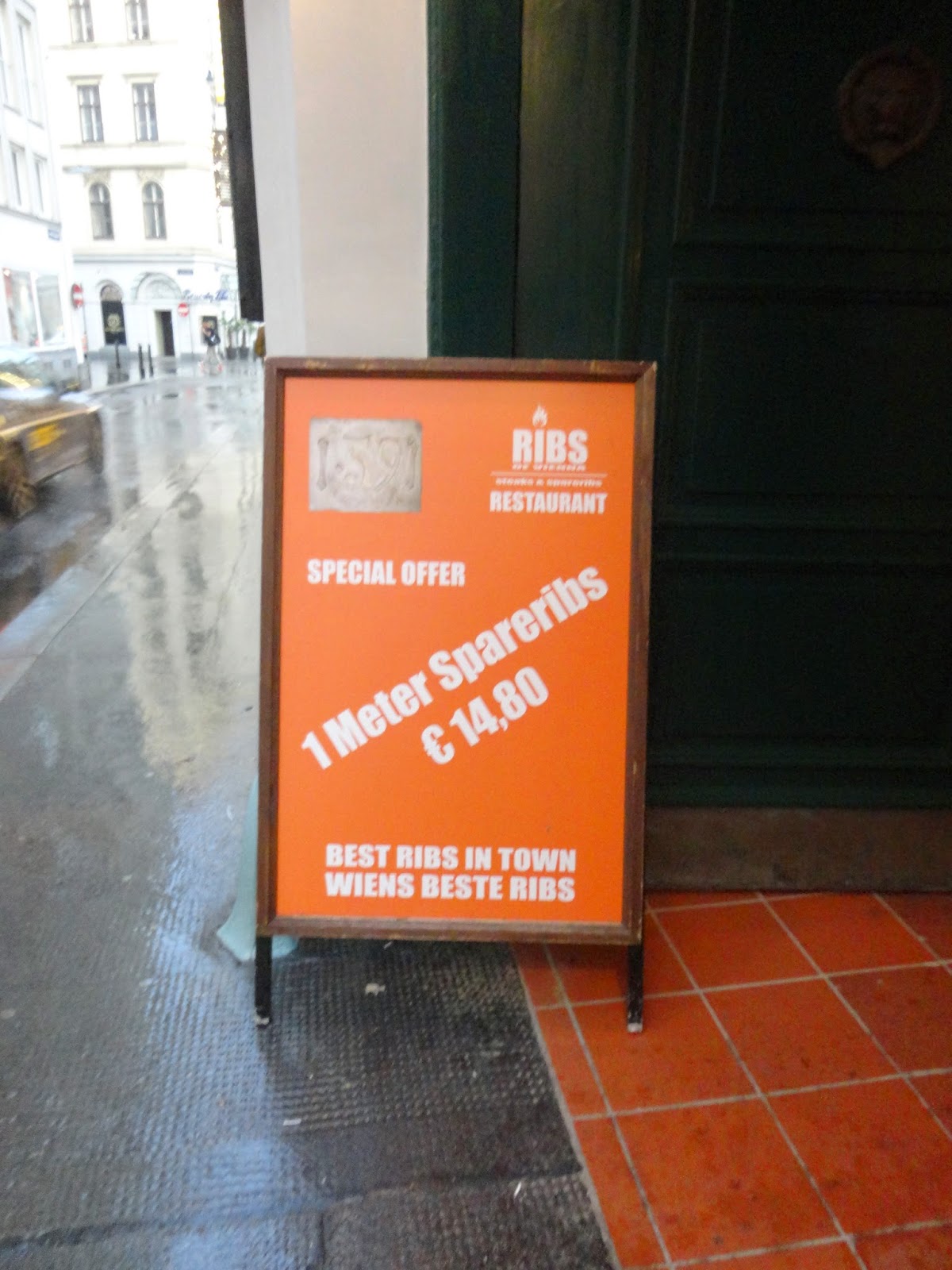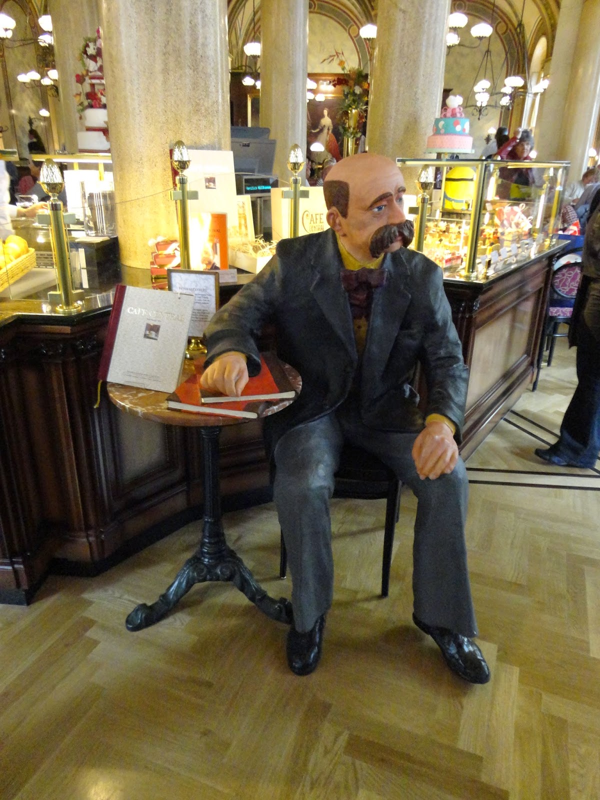 坐1號電車回到了Schwedenplatz買了一杯炒麵跟小攤販瞎聊個幾句,再搭U4的Museums-quartier後走一段路,因為我邊走邊看著導航,小腿還撞到了路擋,不過總算是到最後一個景點Cafe Sperl。