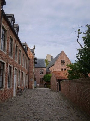我們騎到了Groot Begijnhof van Leuven vakwerkhuizen,這是貝居安會院,目前被列為世界文化遺產,貝居安會是羅馬天主教會的若干平信徒婦女團體,於13世紀在目前荷蘭和比利時領土上創立,其成員是尋求侍奉上帝而又不自世界離群索居的會士婦女。貝居安是一個婦女宗教運動,根據比利時歷史學家亨利·皮雷納(Henri Pirenne)的研究,她們的成功可歸於暴力、戰爭、軍事或半軍事行動,奪走許多男人生命所引起的婦女過剩。大量婦女別無選擇,只好聯合併集體獲得富裕施主的幫助。目前這座修道院是當作一般的住宅使用,房子外觀看起來很古典。
