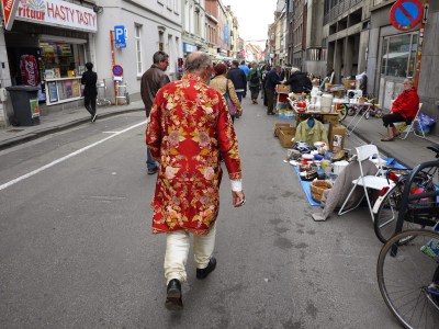 一個小巷走到旁邊的Tiensestraat,這裡有一整條的熱鬧假日市集,隨著快走到Ring大道,市集的人潮也漸漸消失。