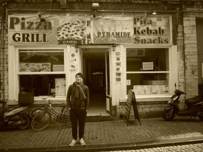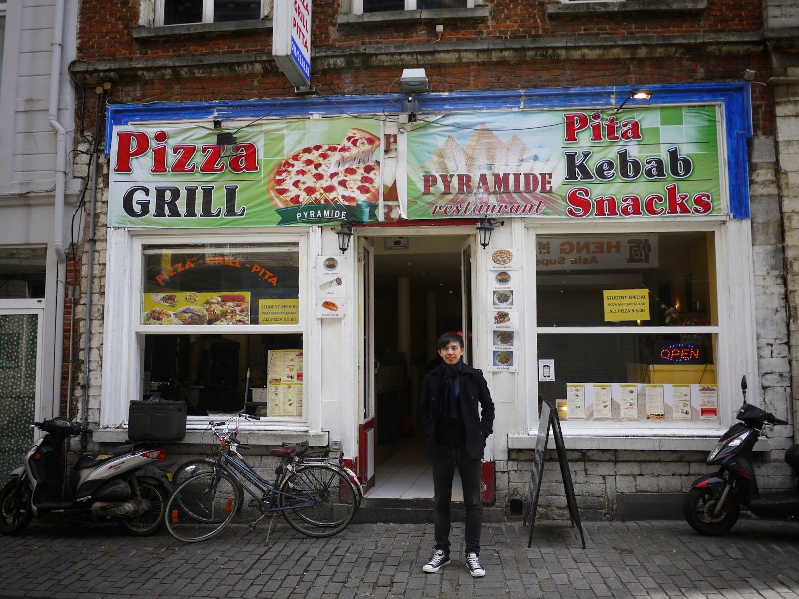 先在宿舍附近的大黑獅超市買了可樂,再到Naamsestraat上的Kebab店吃中餐,這家店意義非凡,是我第一次在歐洲過生日的餐廳,雖然很簡單,但卻經濟實惠又很好吃,吃到薯條都快吃不下去後,打電話找了一起在魯汶念書的同學一起出來逛逛。