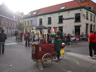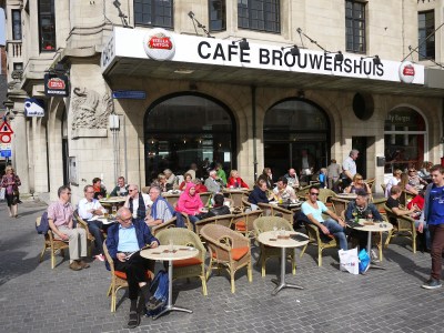 順著Naamsestraat騎到了舊市鎮廳廣場,目前舊市鎮廳拿來當作表演辦活動的場地,在這裡因為天氣比較冷,曬著溫暖的太陽是一種享受,咖啡廳外面的座位總是比裡面的座位多人,