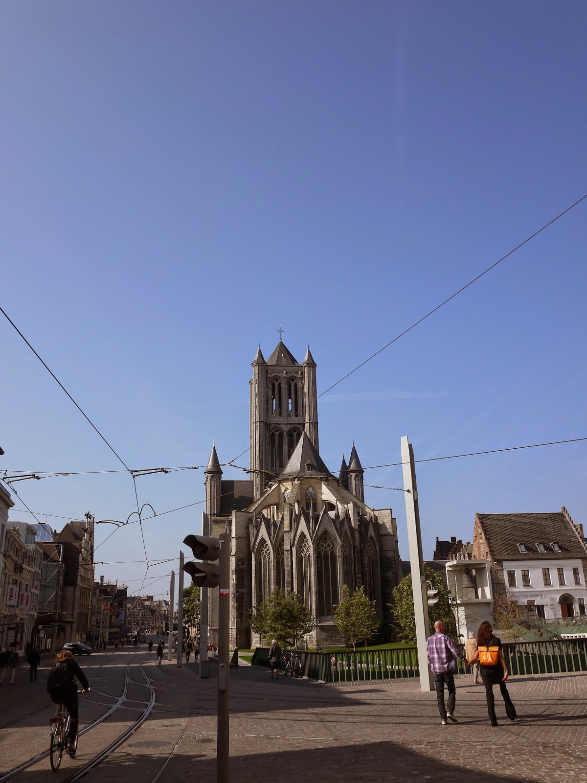 左邊是聖尼古拉斯教堂,右邊是高聳的根特鐘塔,再右邊一點是St Bavo’s Cathedral(聖貝文教堂),電影"大尋寶家"裡面的根特祭壇畫就擺在這座教堂裡面,只可惜我們沒好好進去欣賞。