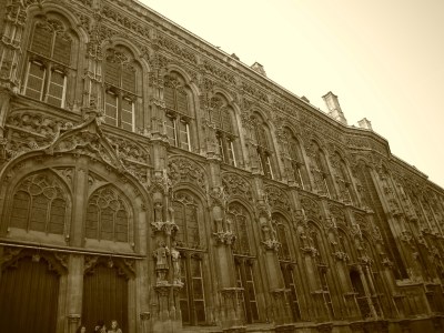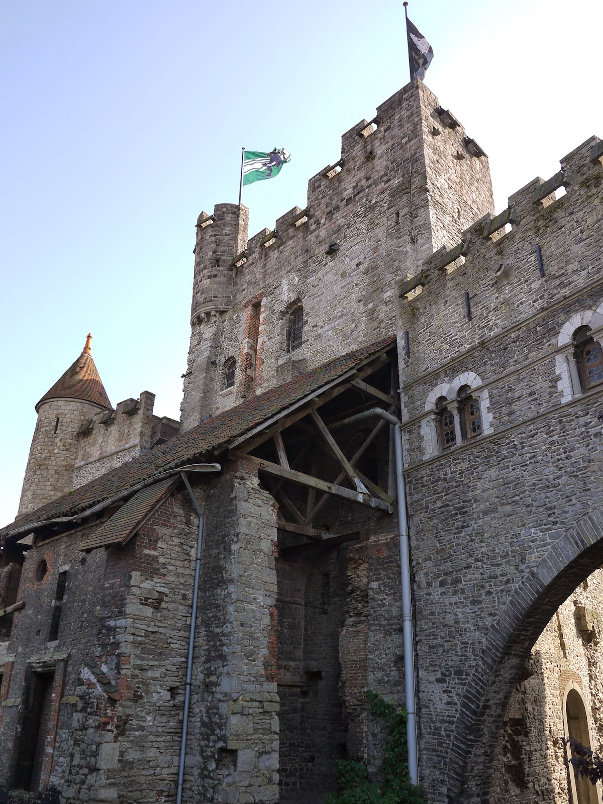 直走會來到Gent的舊市政廳,舊市政廳就像Leuven舊市政廳的風格,我們左彎來到了萊厄河畔,過了橋先在Sint Veerleplein附近吃了Kebab充充飢,再到附近的Gent Gravensteen(伯爵城堡)進去參觀,
