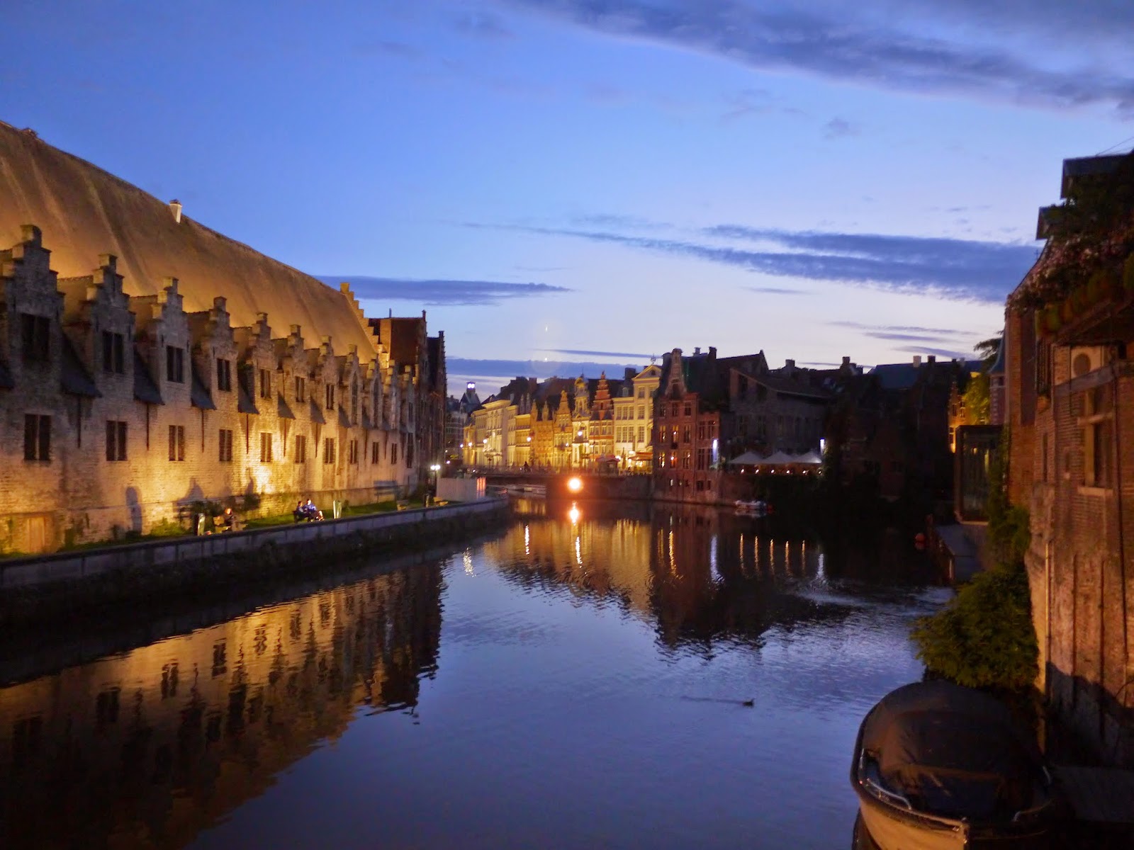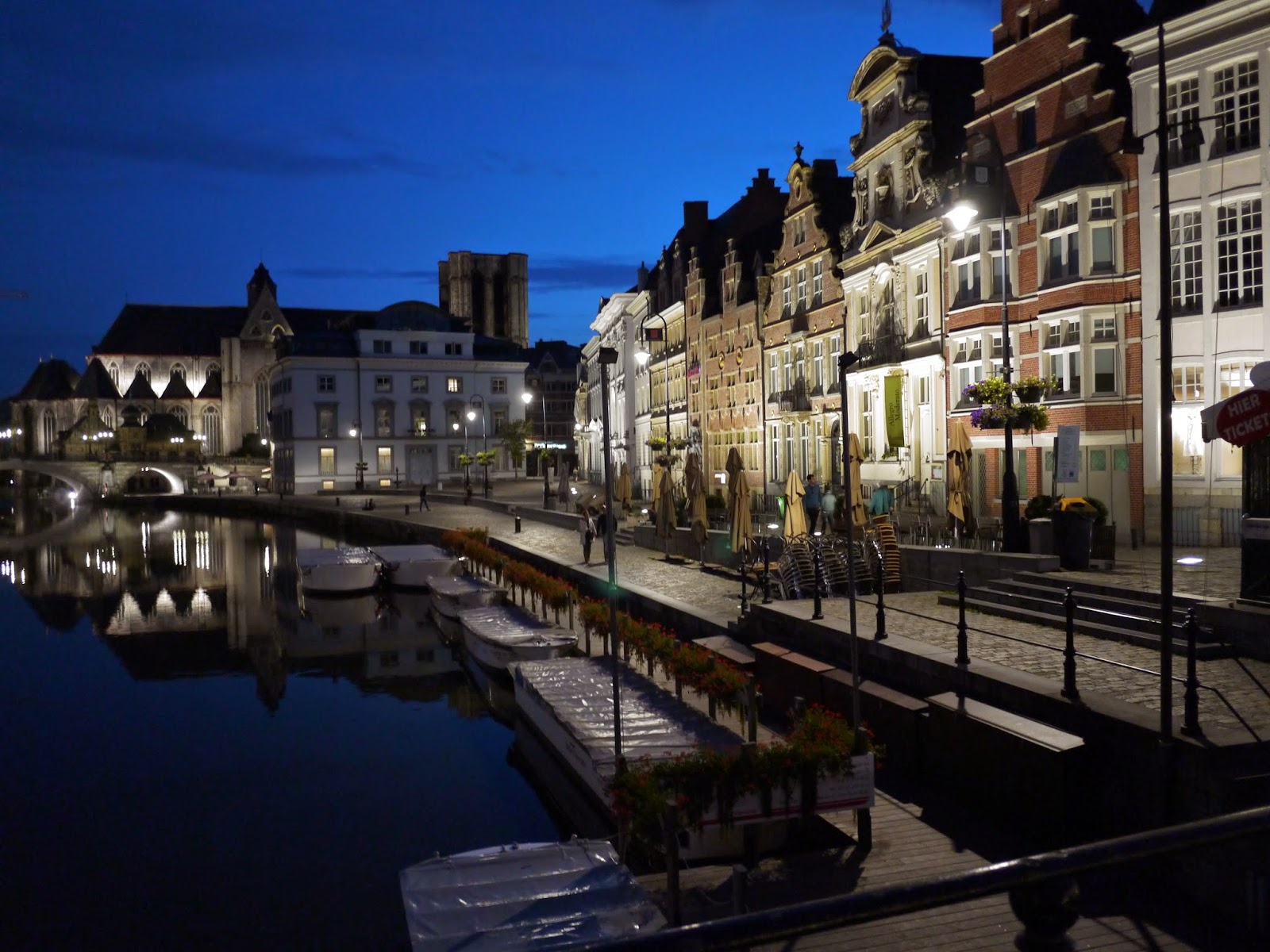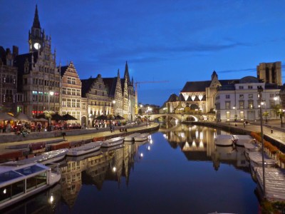 根特最著名的就是晚上的夜景,古色古香的建築物,透過現代的燈光打在上面,給予它們不一樣的生命,來這裡一定不能錯過晚上,河畔上發亮的房子倒映在水面上,格外令人陶醉。