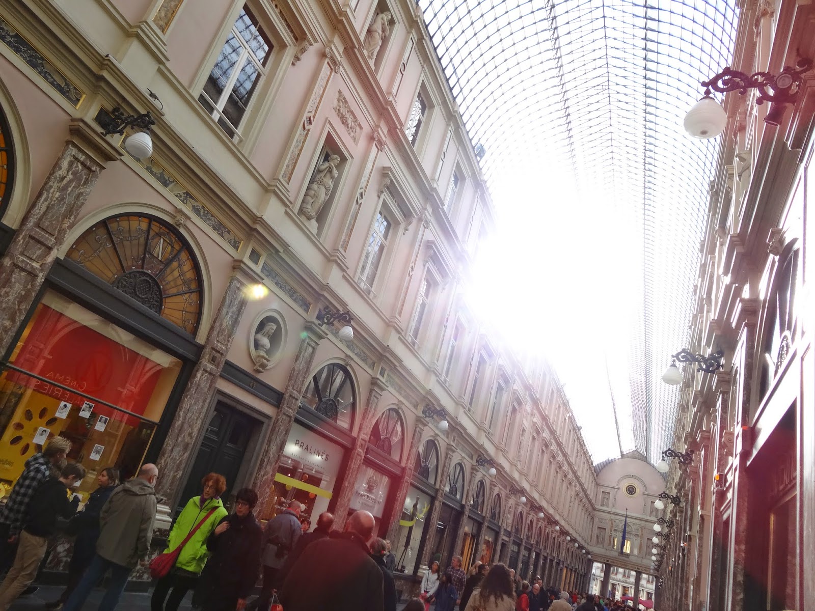 今天是James與竹君來比利時的最後一天,因為趕著五六點的火車跟飛機,只能帶他們到布魯塞爾市中心走走,坐車到布魯塞爾中央車站,出站後順著下坡走,會先來到歐洲最古老的購物拱廊之一,也就是以前的shopping mall吧,裡面有許多精品店跟巧克力店,比利時有名的巧克力包括Neuhaus或是Godiva,Neuhaus是比利時皇家御用的巧克力,Godiva則是大家都聽過的高級巧克力吧。還有一種比較便宜但是是在超市就可以買到的平價巧克力cote d’or,又叫大象牌,因為產品就是一隻大象的標誌,口感濃郁又不貴,適合送親朋好友。