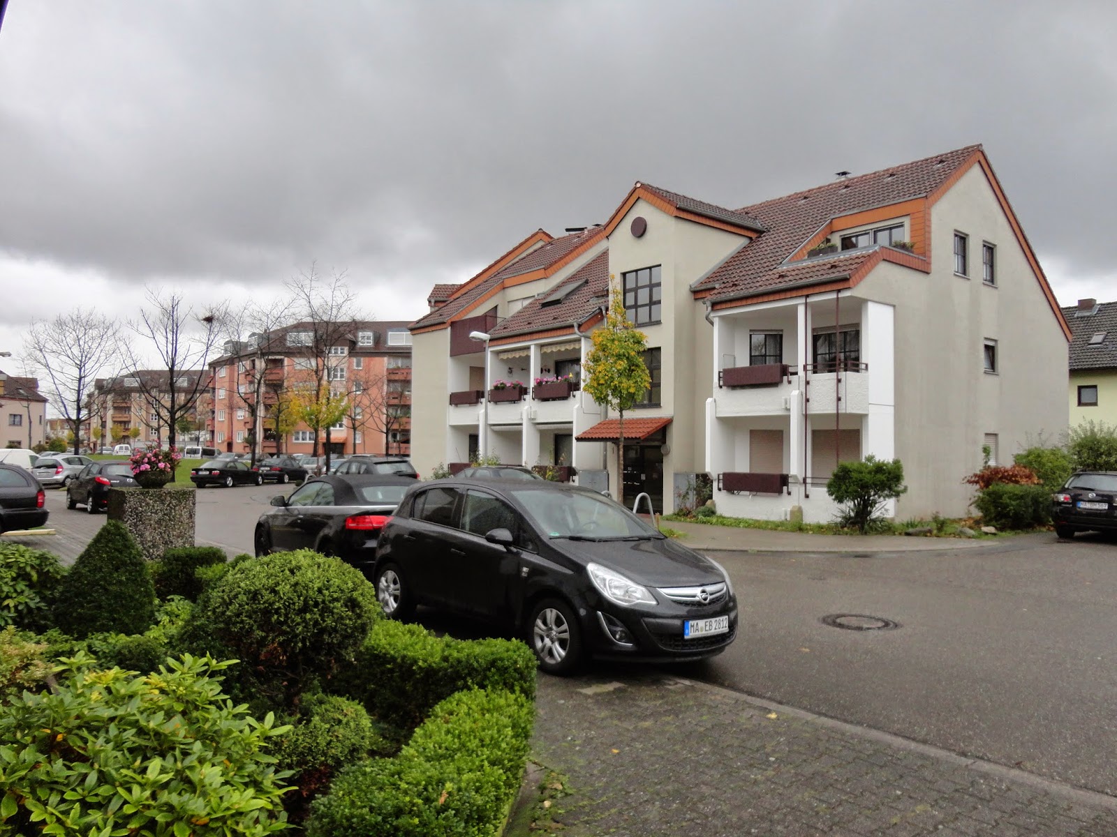 睡到了中午才從James的宿舍出發,往公車站的另一頭走,穿過了附近的小住家,今天要搭S-bahn到海德堡,James說之前都來這裡踢足球。