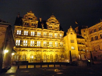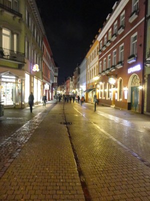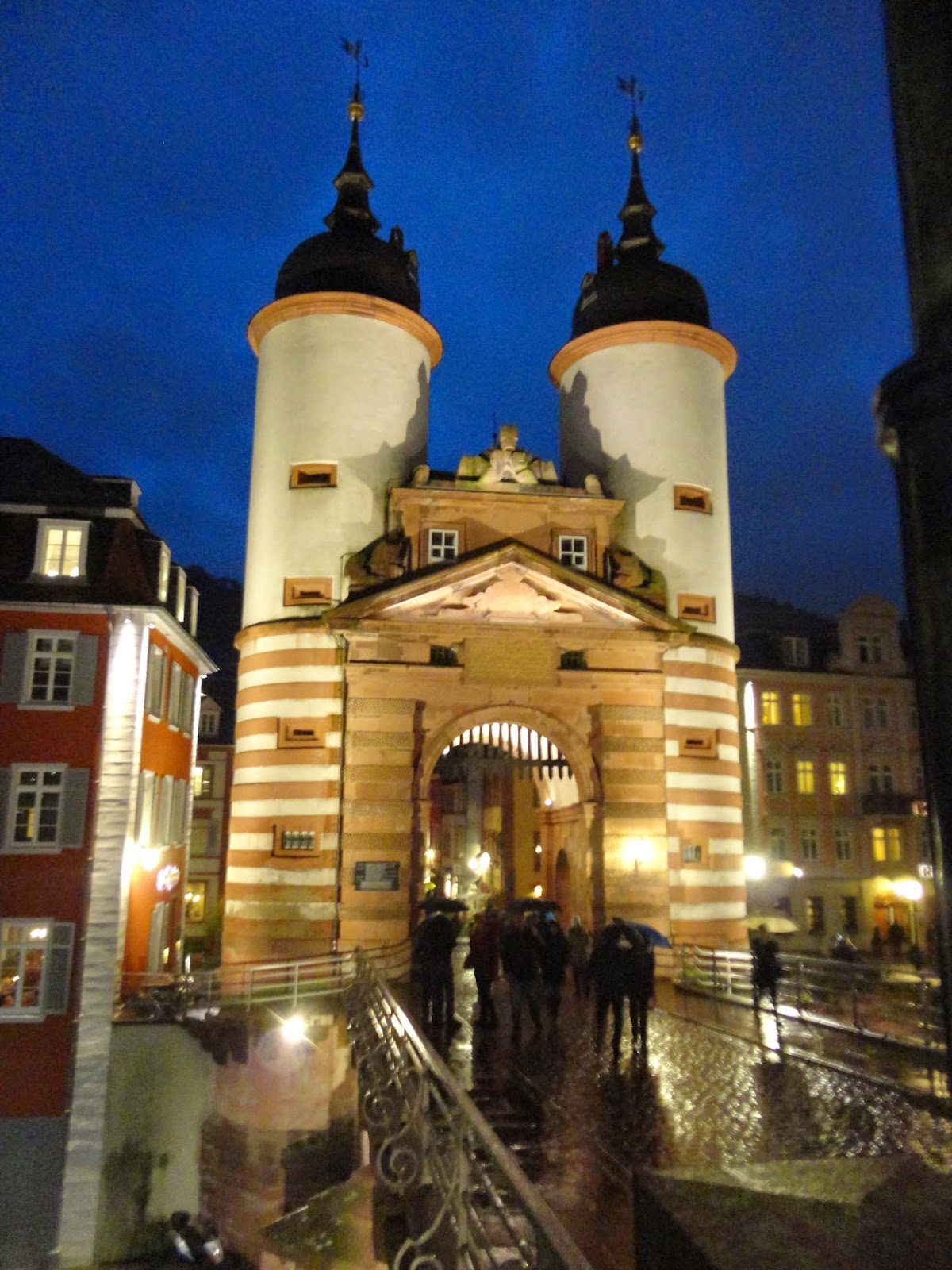 到了海德堡天也黑了,禮拜天商店都沒開,當然包括珍奶店,幸好昨天有先來買過,下著綿綿細雨配著古老的徒步區,看著前方山上的城堡彷彿置身在中世紀的夜晚,一個轉身來到海德堡著名的老橋,從橋上可以一窺城堡的夜景,