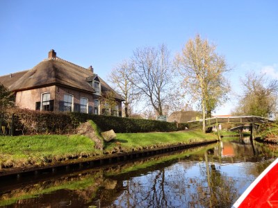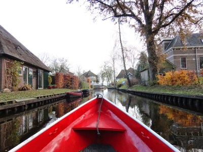 一大早天氣很好可以租船,於是先把行李放在房間裡乘著船去遊湖,船是自己控制,稍微有些速度就可以感受到冷風撲面而來,戴起了手套跟毛帽,帶著興奮的心情出發,沿途的景色昨天都有看過,但是天氣一好,景色渾然不同,早晨的寧靜只聽得到馬達低沉的聲音,就這樣慢慢地穿過每座小橋,飄過每戶人家,