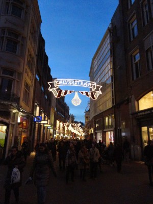 走到了水壩廣場,旁邊就是阿姆斯特丹王宮,一直沿著Damrak街走到火車站,這條大街布滿了聖誕市集,買了一袋薯條跟鬆餅來吃,再沿原路回去經過西教堂來到安妮之家,在荷蘭參觀博物館可以買博物館卡,如果參觀幾個以上買卡會比較划算喔。