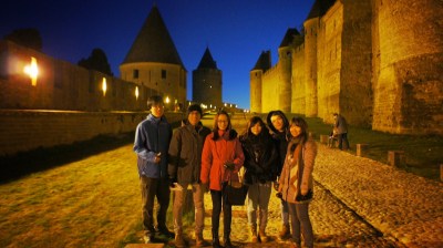 卡爾卡頌,1997年聯合國列為世界遺產,位於南法,離其他南法城市有些距離,但剛好從比利時可以搭Ryanair到卡爾卡頌機場來回,於是我們找了比利時一起交換的同學,COCO,Mike,Chi和巧宜一起出發,原本要再多孟哲的,只是因為它有繁重的報告要寫,只好留他幫我們留守宿舍了。