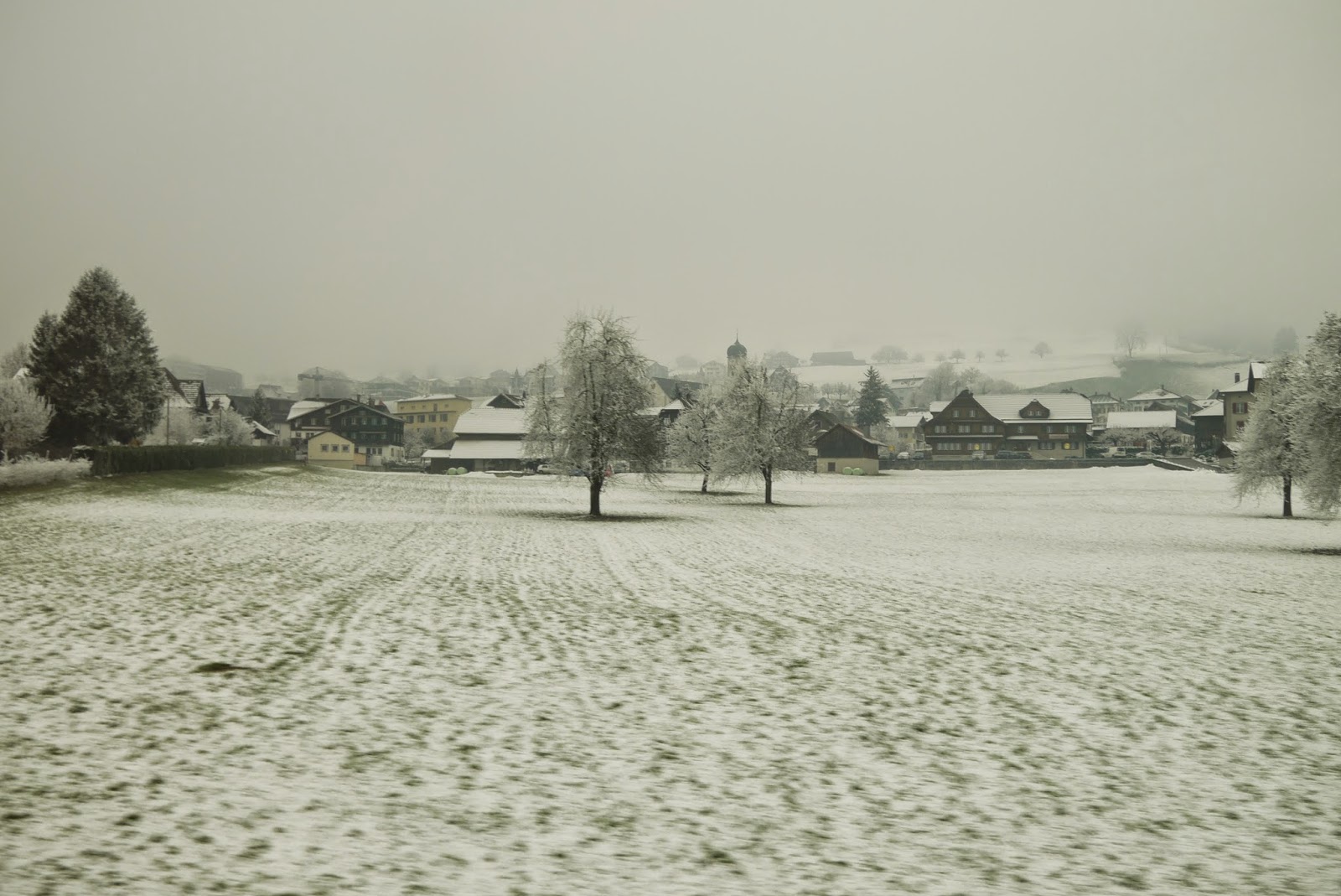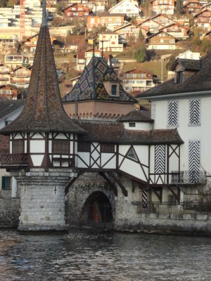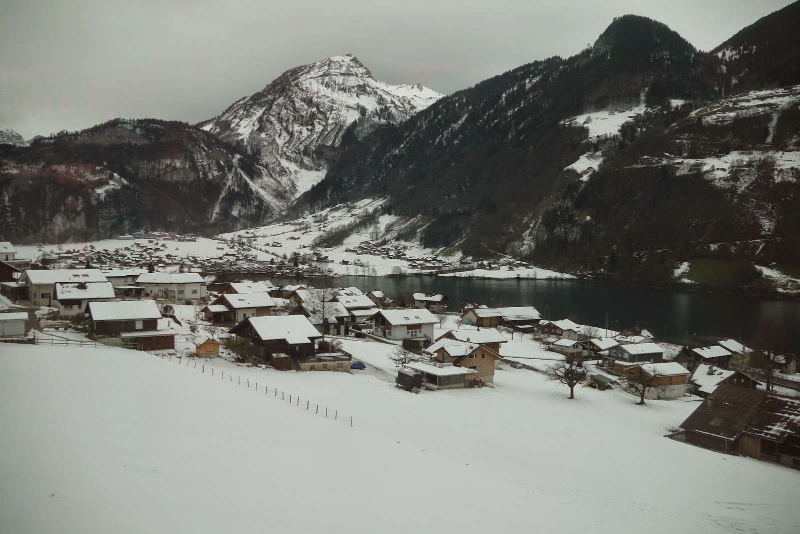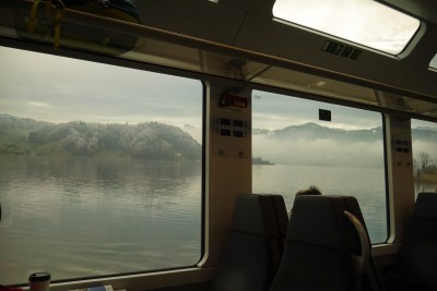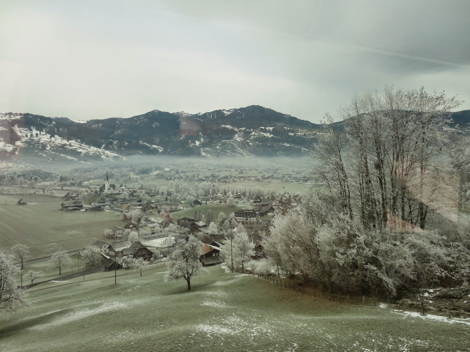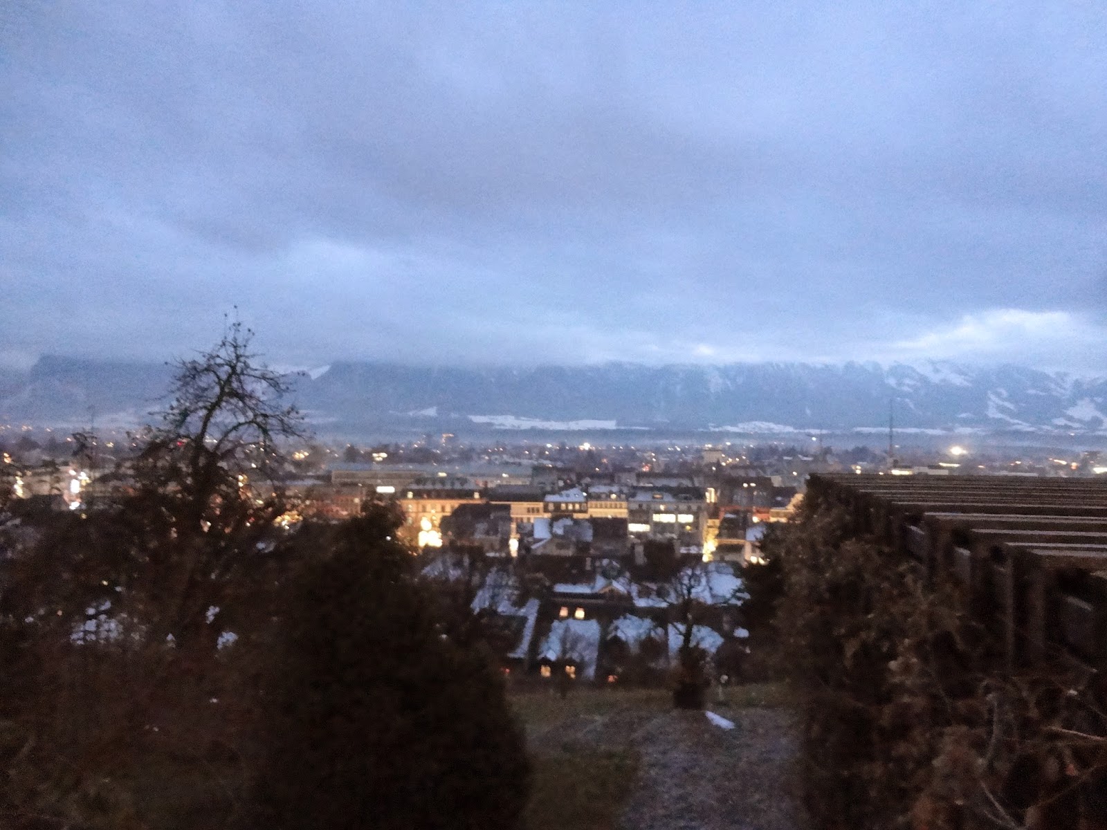 沿著兩旁復古的路燈透著寒意,經過教堂慢慢走下山,搭火車回Interlaken, 搭回來的路上都快睡著了,原來下午顧著看美景都忘記注意船有開這麼遠,回到飯店,跟飯店的老闆借了餐具在小餐廳用餐,剛好遇到了從香港來的朋友,小聊了一下後,帶著倦意會到房間。