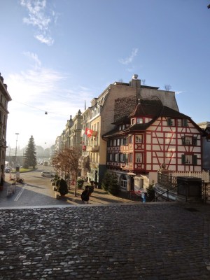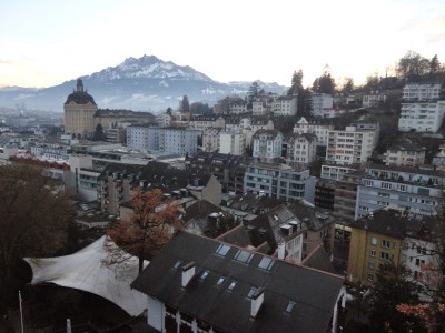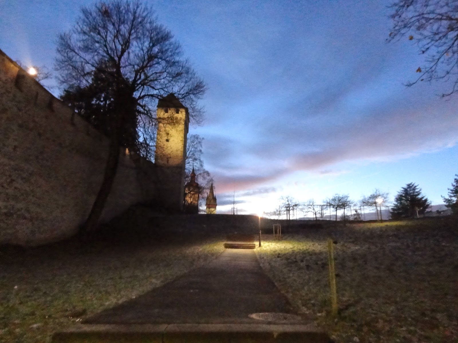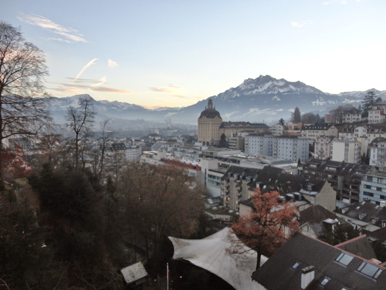 天色漸暗,想走到Luzern山坡上的老牆上,一窺Luzern的夜景,可惜來的太晚又是冬季,已經關門了,不過卻意外的繞到了Luzern的老城區,感受一下聖誕節溫馨的氣氛,