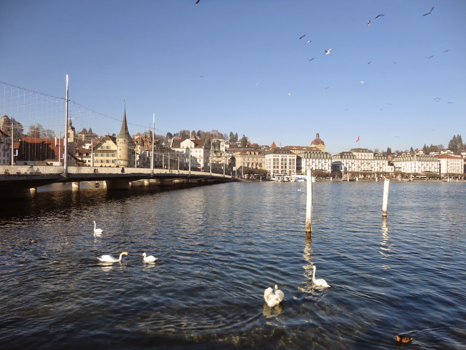 一出火車站就看到迷人的Lake Luzern,湖水是如此的清澈,可以直接看到底部,湖上布滿了天鵝與小鴨,