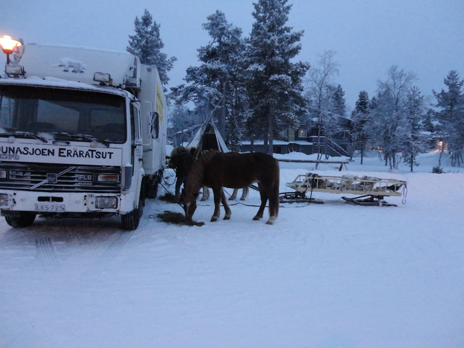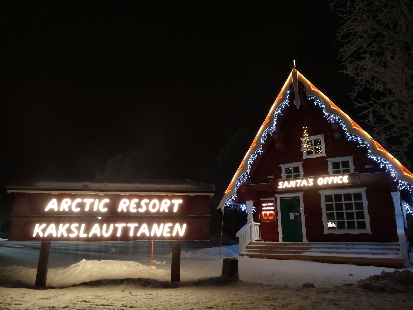 坐了四個小時的巴士,來到距離Helsinki北邊一千多公里遠的小鎮Saariselkä,大約是北緯68度,來這裡的目的是希望可以在此看到極光,但在北極圈的這兩天,天空不做美,天空的雲層很厚,看極光也只好放在下一次的旅程了。