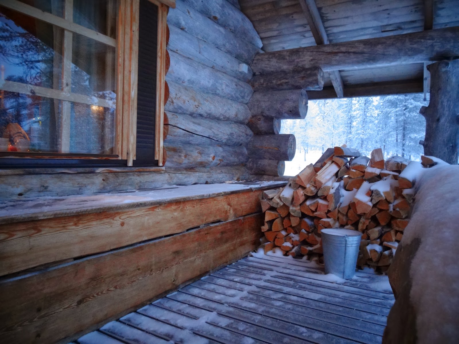 | 外頭的木材,可拿到裡面暖爐燒 |