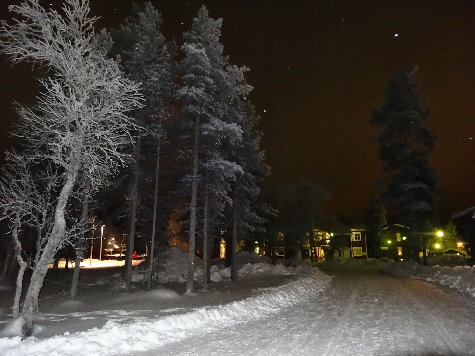 回家的路上,天空偶爾會亮亮的,看不到極光的我們都自我安慰一下,覺得那個一定是極光,只是被雲擋住了