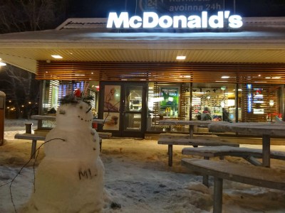 之後又做了四個小時的車,回到昨天住過的Roveniemi,去吃全世界最北的麥當勞,Roveniemi是整個芬蘭北方的入口,所以回Helsinki的火車都要到這一站搭車。