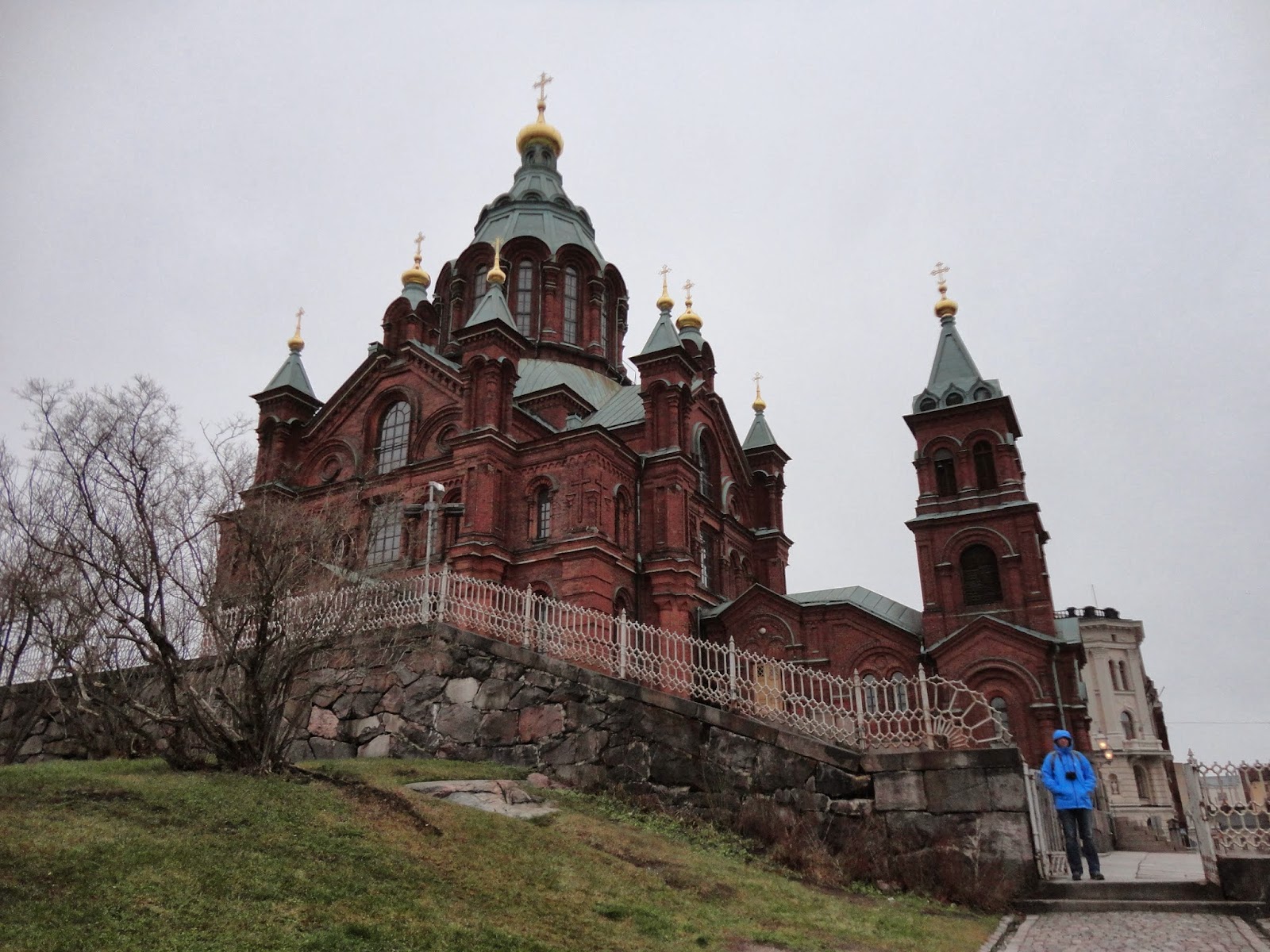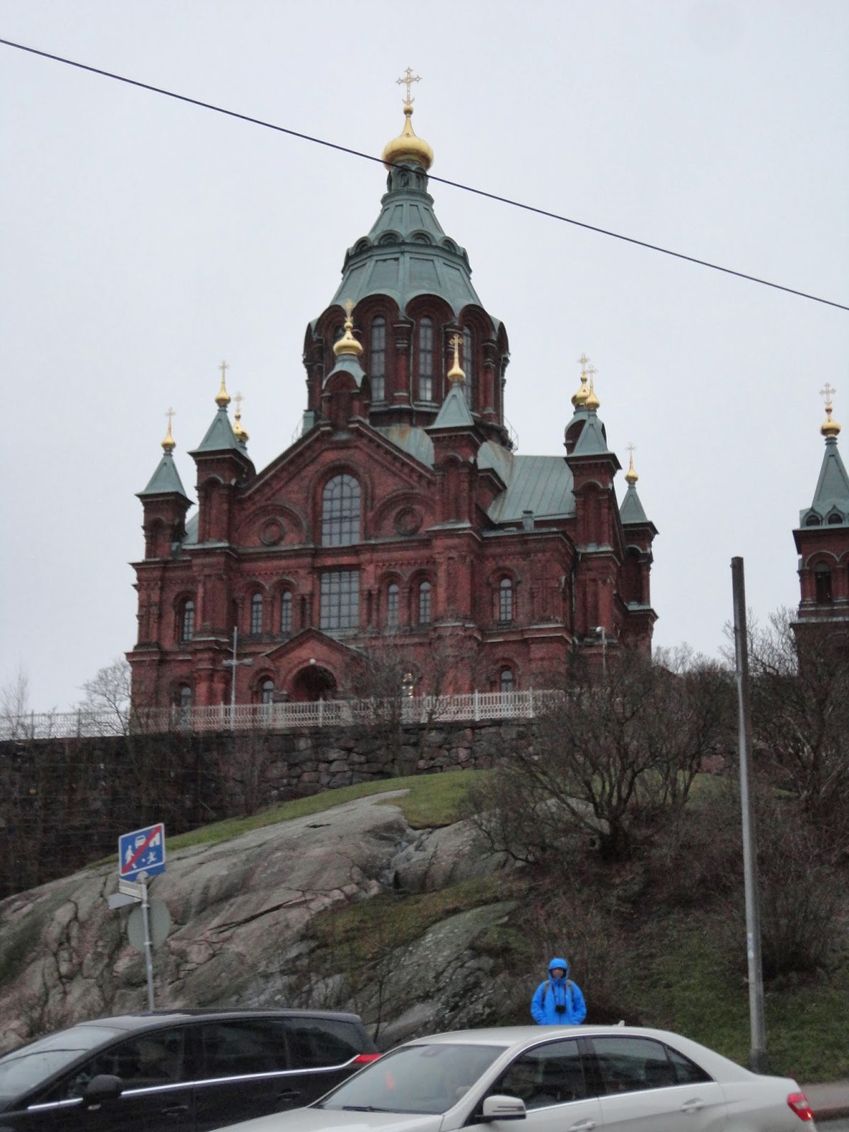 因為芬蘭曾經被俄羅斯統治過,所以有一座比較有名的東正教式教堂,進去裡面正好有人在做禮拜,整個儀式跟天主教很不一樣。