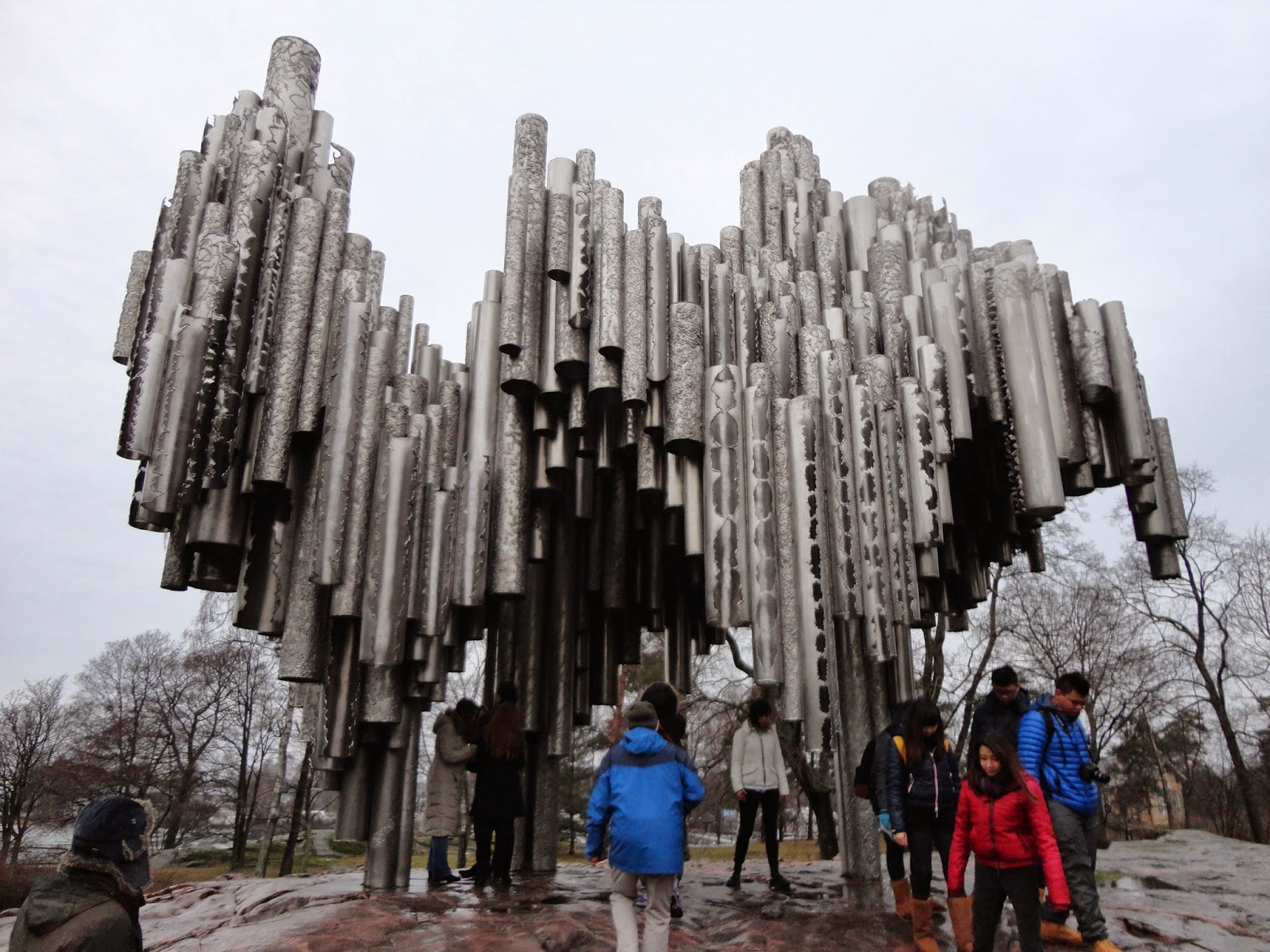 聖誕節的一大早,因為是下午的飛機回Brussel,於是我們排了一個行程去赫爾辛基市區的西北方,參觀岩石教堂,跟西貝流士公園(Sibelius Park),但其實路程有點遠,我們走到了岩石教堂,發現還在做聖誕節的禮拜活動,於是就先去比較遠的西貝流士公園。西貝流士是芬蘭的音樂家,這個公園以他命名,裡面的紀念碑包含有他的頭像,以及像管風琴的紀念碑。