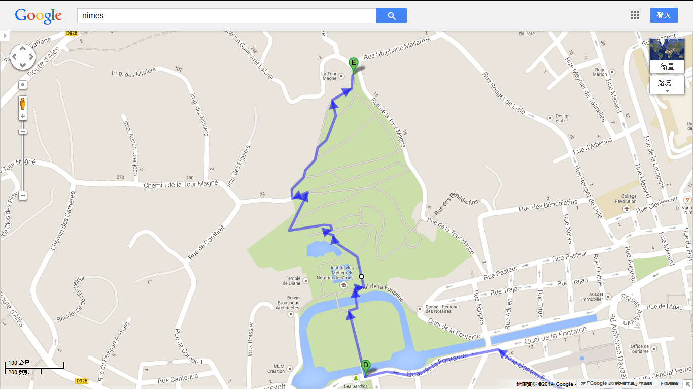 沿著花園階梯往上爬,頂點會是公元前16年建的馬尼塔(La tour Magne),這裡是當地的最高點,主要是拿來監視有無外敵來犯用的。