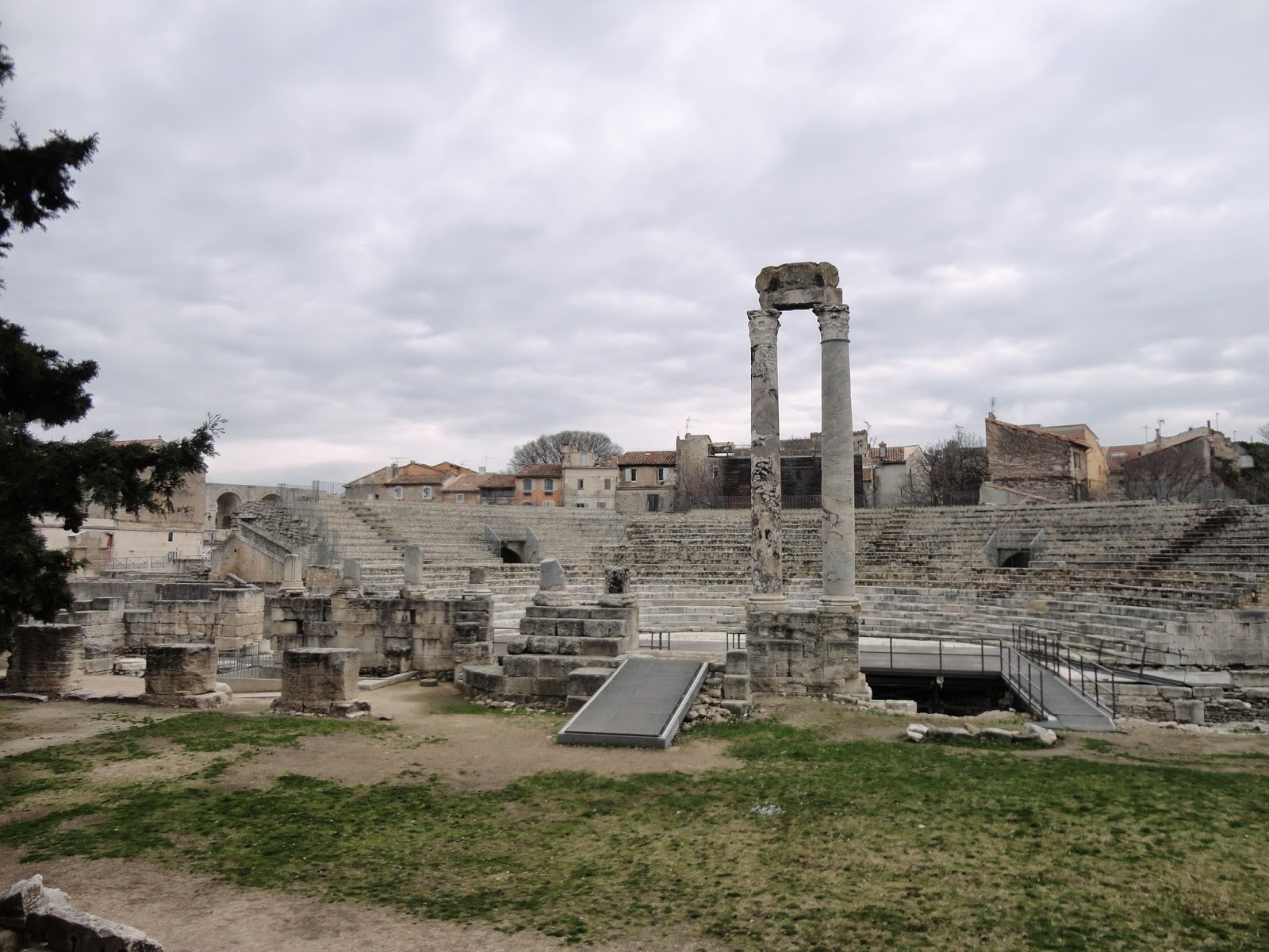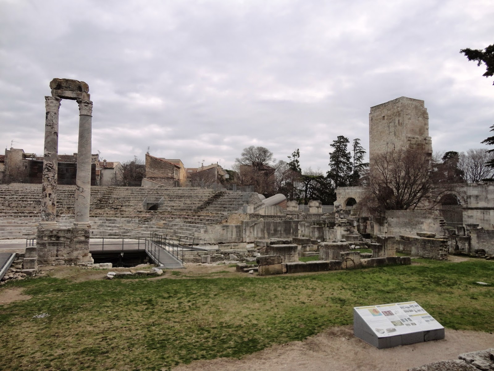 沿著路一直直走,會先看到古羅馬競技場,跟Nimes一樣有競技場,但這個競技場已經沒有再使用,只做為觀光用途,路上都會有一些立牌,上面有梵谷的畫作來說明是在哪個場景畫這幅畫的