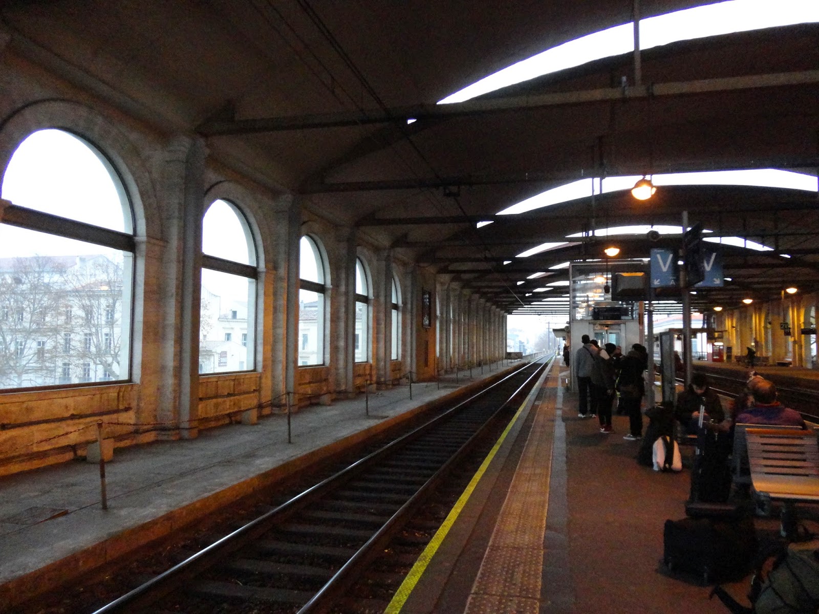 第二天起了一個大早,吃完飯店付的早餐,來到Nimes火車站,拖著行李往Arles出發,Nimes火車站是高架的,月台在二樓,一上月台就看到Nimes的市徽